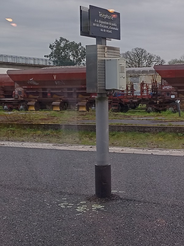 Am „Knotenbahnhof“ Folligny wurde der Fahrkartenschalter geschlossen. Fahrgäste können sich nun bei Betriebsstörungen über ein Telefon beim Fahrdienstleiter erkundigen.