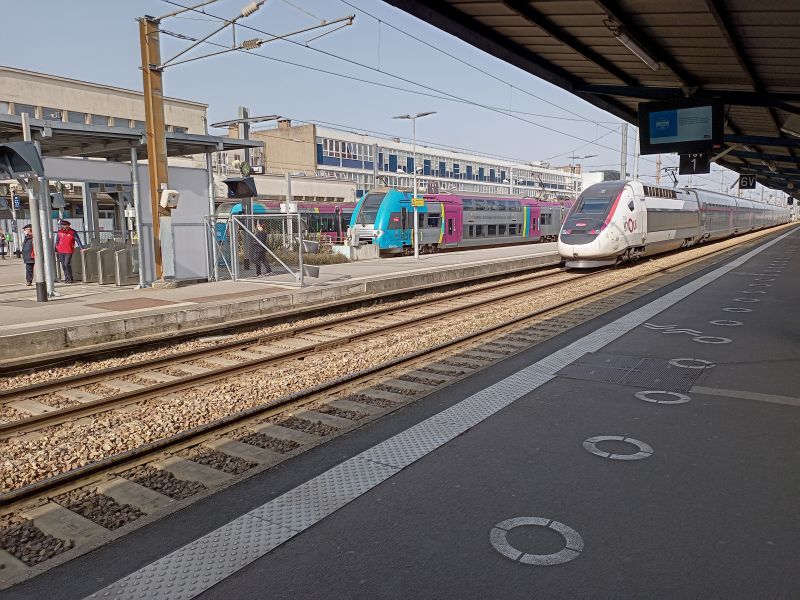 Die Weiterfahrt zu unserem Tagesziel Nantes führt nun zurück nach Dol de Bretagne und von dort direkt weiter bis nach Rennes. Wir nutzen dabei erneut einen Régio 2N. In Rennes steigen wir bereits am Haltepunkt Pontchaillou aus, um mit der Metro für die Mittagspause ins Stadtzentrum zu fahren, denn der Anschluss nach Nantes hat noch fast zwei Stunden Zeit.