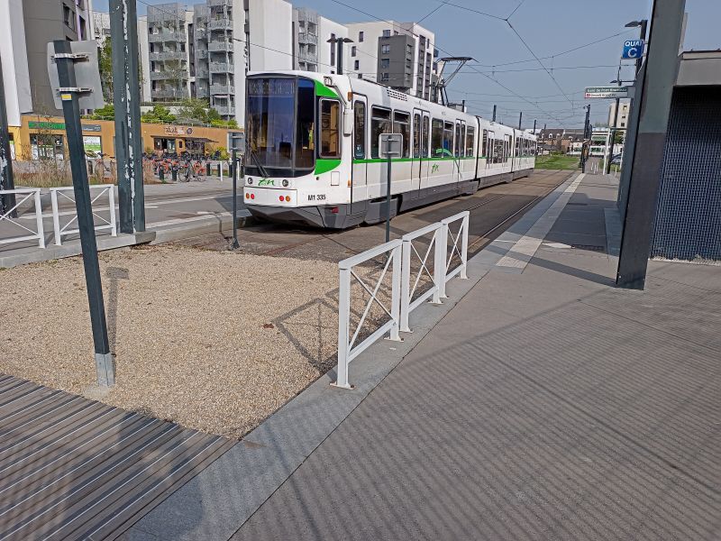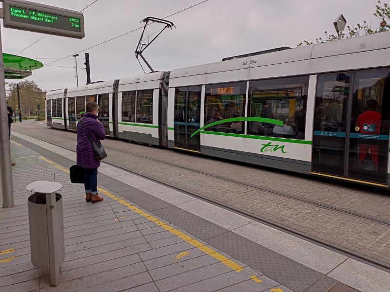 Während der Fahrt mit der Tram wird ein Problem des ambitionierten Straßenbahnausbaus in Frankreich und besonders in Nantes deutlich: Obwohl die Tram auf der Île de Nantes im überlagernden Abschnitt zweier Linien im 3-Minuten-Takt fährt, sind alle Züge voll! Das ÖPNV-Netz passt trotz des voranschreitenden Ausbaus (noch) nicht zur Größe der Stadt und wird daher von seinem Erfolg überrollt. Bis das Netz die notwendige Leistungsfähigkeit erreicht hat, wird es wahrscheinlich noch weitere Angebotserweiterungen benötigen.