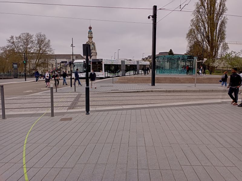 Die Metro ist allerdings nicht einfach zu finden, denn die gleichnamige Metro-Haltestelle Pontchaillou liegt nicht direkt neben dem Bahnhof. Wir müssen den verwinkelten Campus der örtlichen Universitätsklinik durchqueren, um dorthin zu gelangen. Gemäß Liniennetzplan der Metro wird der Umstieg zum Zug deshalb an der nächsten Haltestelle Anatole France empfohlen. Wir finden die Haltestelle Pontchaillou dennoch nach einigen Minuten und erreichen kurz später das Stadtzentrum.