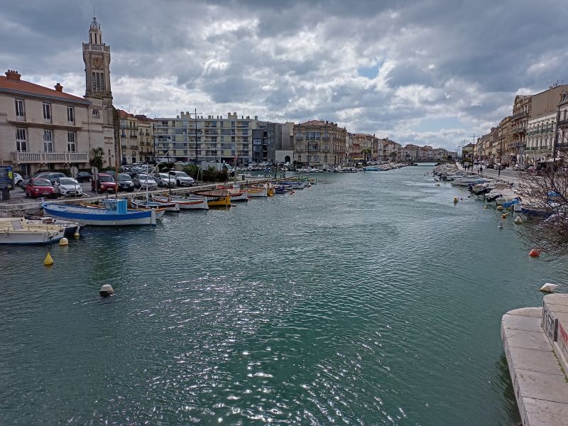 Sète liegt auf einer Landzunge, die einerseits durch das Mittelmeer und andererseits durch den Étang de Thau begrenzt ist. Die Altstadt wird von zwei langen Kanälen und zwei Querkanälen durchzogen, wodurch Sète zu seinem Beinamen „Klein-Venedig Frankreichs“ gekommen ist. Die Stadt erinnert tatsächlich an Venedig, ist aber wegen des Autoverkehrs in der Innenstadt nicht direkt damit vergleichbar. Während unseres Aufenthalts in Sète dreht der Sturm richtig auf, sodass mediterranes Flair mit friesischem Wetter zusammen kommt.