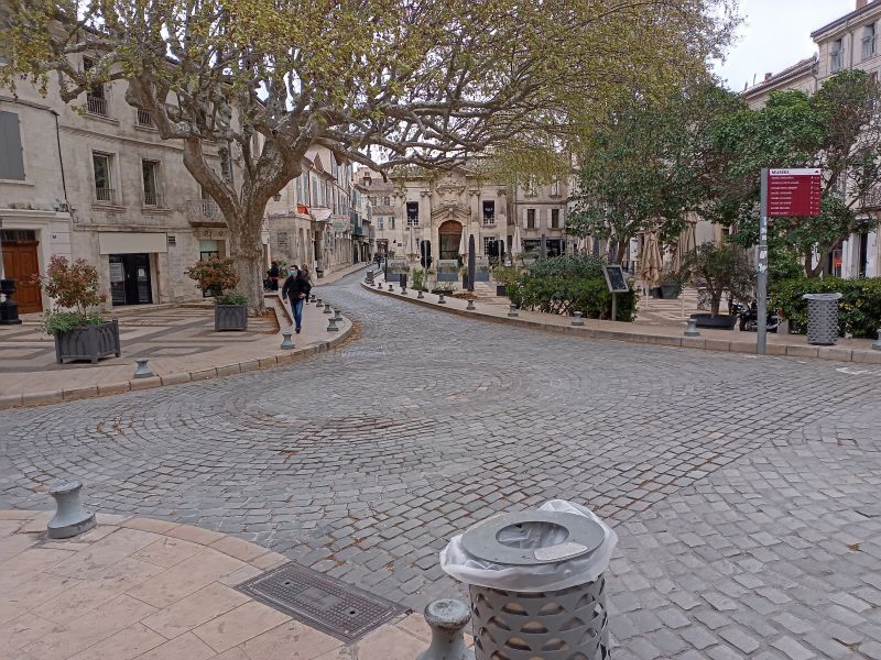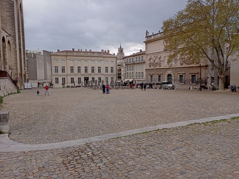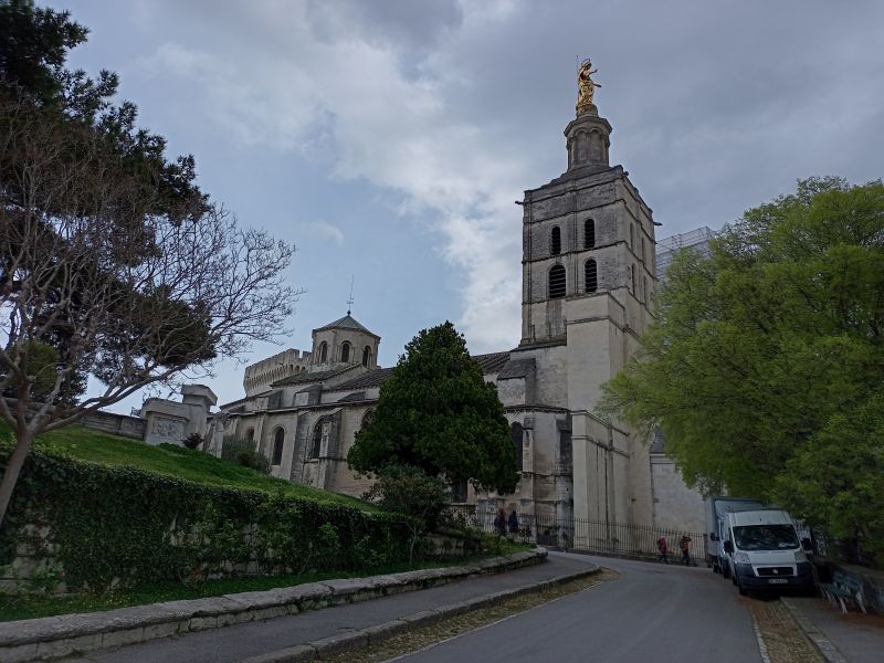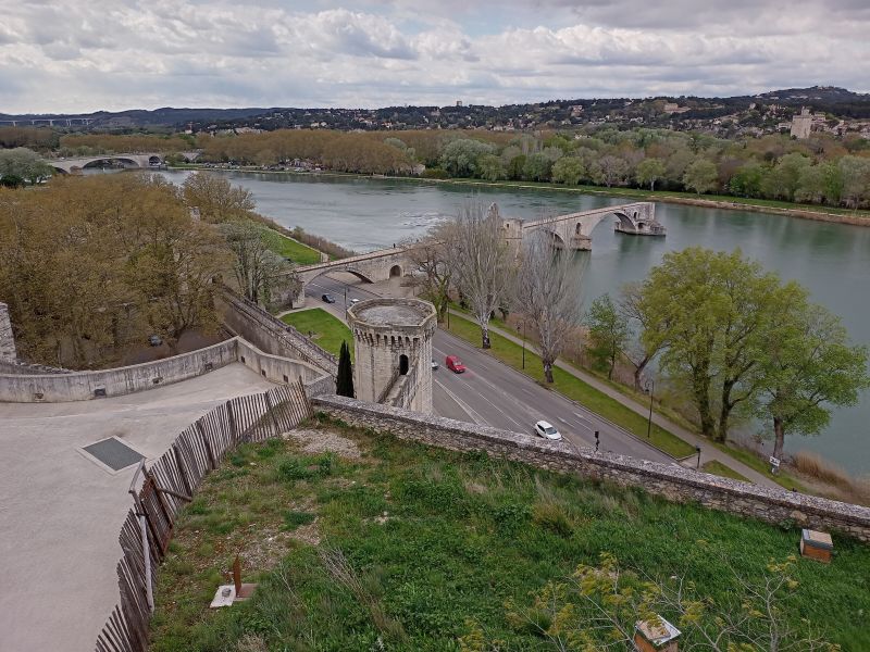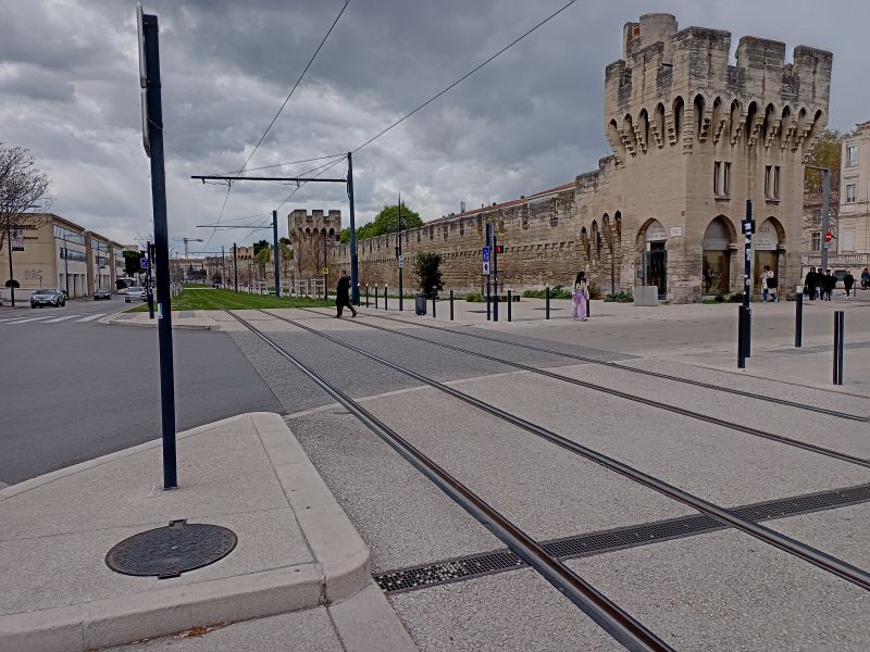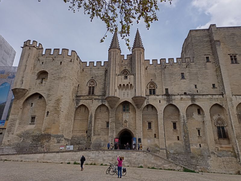 In Avignon fahren wir mit einem Bus zum Busbahnhof Porte de l’Oulle am gleichnamigen Stadttor. Die Stadt Avignon plant auf dieser Strecke den Bau einer Straßenbahn, die auf einer Brücke über die Rhône weiter geführt werden soll. Durch das Stadttor betreten wir die Altstadt und besuchen dort den Platz vor dem Papstpalast. Im 14. Jahrhundert gab es tatsächlich mehrere Päpste in Avignon. Diese Ehre geht zurück auf den Einfluss des französischen Königs im Konklave der Kardinäle einerseits und auf die Kooperation der so gewählten Päpste andererseits, die sich nach ihrer Ernennung in Frankreich statt in Rom niedergelassen haben. Den Ansprüchen des Heiligen Stuhls entsprechend wurden die Stadtbefestigung und der Palast im 14. Jahrhundert ausgebaut. Die historischen Anlagen sind zum Großteil noch heute erhalten. Daneben befindet sich in Avignon noch eine andere Sehenswürdigkeit mit einer interessanten Geschichte: Die Pont Saint Benezet. Die Steinbrücke wurde zur Zeit der Päpste als Verbindung zwischen der Innenstadt und der Vorstadt Villeneuve-lès-Avignon errichtet, hielt aber in den folgenden Jahren den Hochwassern der Rhône nicht stand. Heute stehen von der Brücke nur noch vier Pfeiler und sie endet an einer Abbruchkante mitten auf dem Fluss.