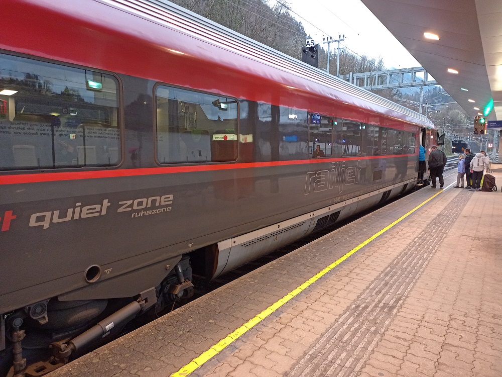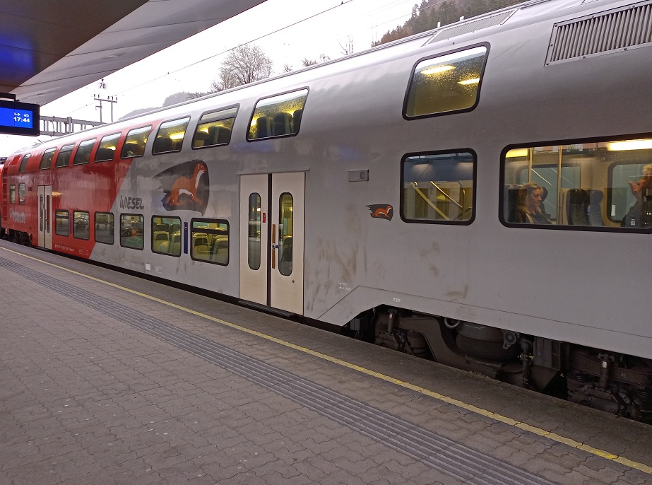 Die Reise beginnt unspektakulär an einem trüben Freitagmorgen mit der Anreise aus der Südpfalz nach Karlsruhe. Der weite Weg in die Alpenrepublik wird uns heute über die Schwarzwaldbahn, den Bodensee und den Arlberg nach Tirol führen. Noch ist es aber früh am Tage und die Regionalbahn nach Karlsruhe ist pünktlich.