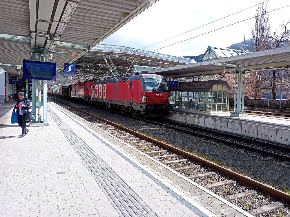 Bild 2-13: Später zieht ein Gespann aus einer Vectron und einem Taurus einen Güterzug durch den Bahnhof von Zell am See.