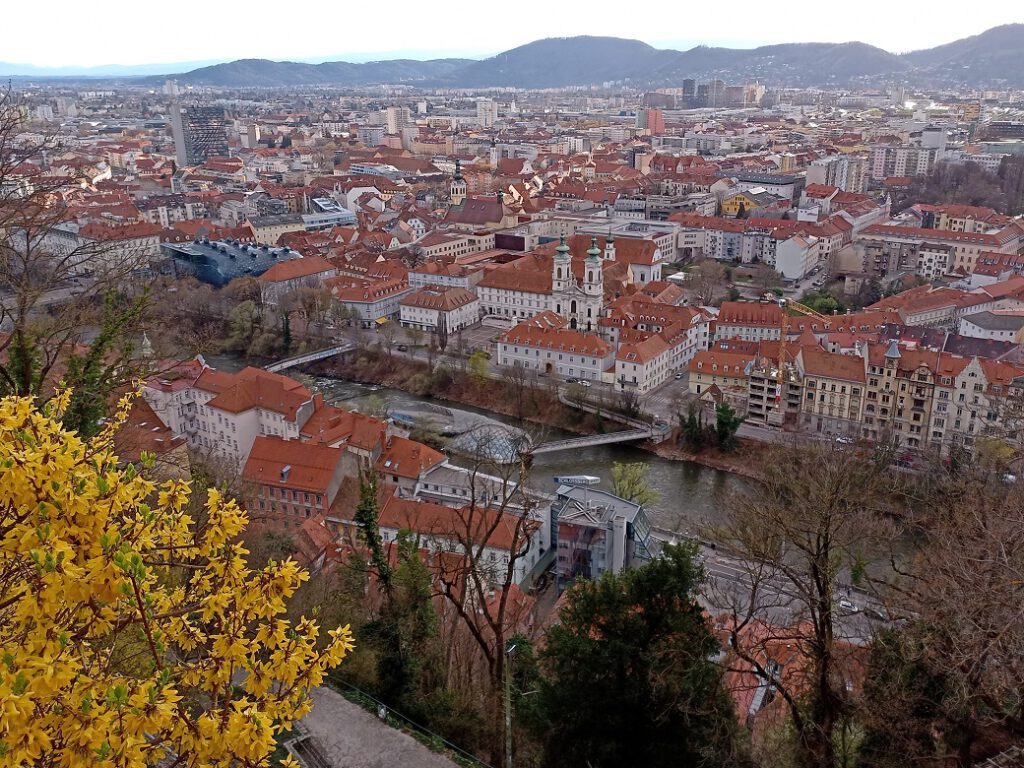 Bilder 2-34 und 2-35: Ausblick auf Graz (im Vordergrund von Bild 2-34 ist die Murinsel zu erkennen)