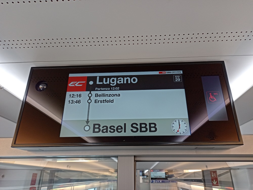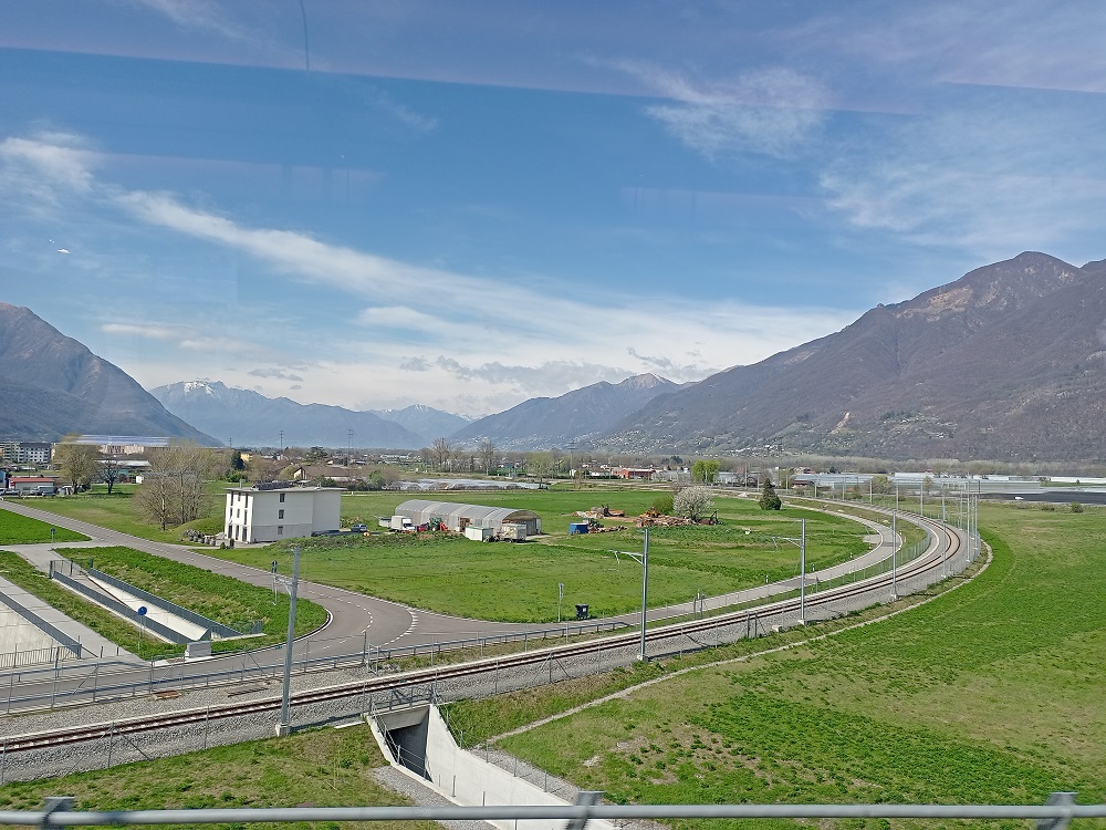 Im Zug wird uns dann erklärt, dass dieser zunächst regulär bis Bellinzona fährt. Anschließend werden wir über die Gotthard-Bergstrecke umgeleitet und fahren bis nach Erstfeld mit Ankunft gegen 13:46. Bis dahin hoffe man auf die Behebung der Störung, sodass unser Zug die Fahrt mit Verspätung fortsetzen könne.