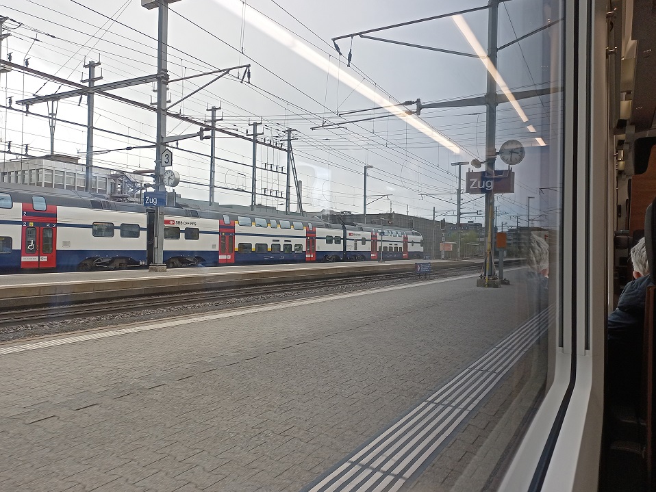 Leider wird der Anschluss am Ende sehr knapp, da das Ablösegespräch in Arth-Goldau sich etwas verzögert und wir dort mit 2 Minuten Verzögerung abfahren. Daher erreichten wir den Bahnsteig in Zürich erst um 15:58. Durch einen rekordverdächtigen Sprint über den Züricher Querbahnsteig schaffen wir es allerdings noch in die letzte Tür des IC nach Basel, der gerade durch den Zugbegleiter abfertigt wird. Direkt nach unserem Einstieg erteilt der Zugbegleiter dem Tf das Abfahrtsauftrag und die Tür fällt zu. Ich bedanke mich daraufhin freundlich beim Zugbegleiter, dass er die 5 Sekunden noch kurz auf uns gewartet hat, wodurch wir eine Stunde Reisezeit einsparen können.