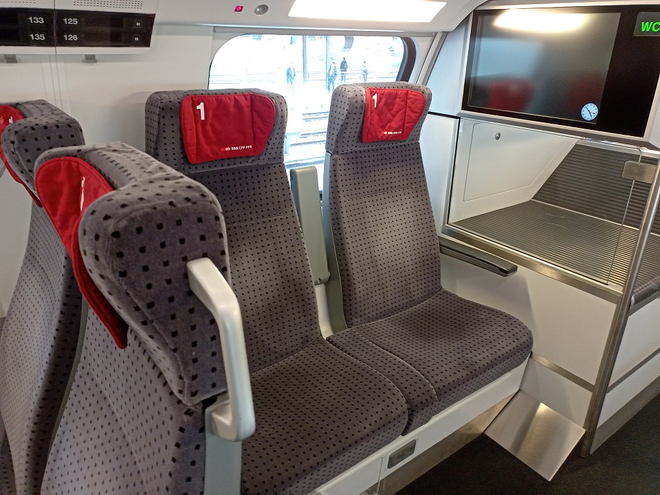 Wie in Frankreich und Italien üblich erfolgt die Mitteilung des Abfahrtsgleis erst rund 10 Minuten vor der Abfahrt an den großen Anzeigetafeln, sodass sich dann in kurzer Zeit einige hundert Reisende hektisch auf den Weg in die westliche Bahnhofshalle machen. Dort erreicht die Vorleistung gerade in diesem Moment erst den Bahnhof und entlässt ebenso viele Fahrgäste auf den Bahnsteig. Daraus ergibt sich ein heilloses Durcheinander der aus- und einsteigenden Fahrgäste, welches den Fahrgastwechsel stark verzögert. Dennoch entspannt sich die Situation bis zur Abfahrt und wir können Milano einigermaßen pünktlich verlassen.