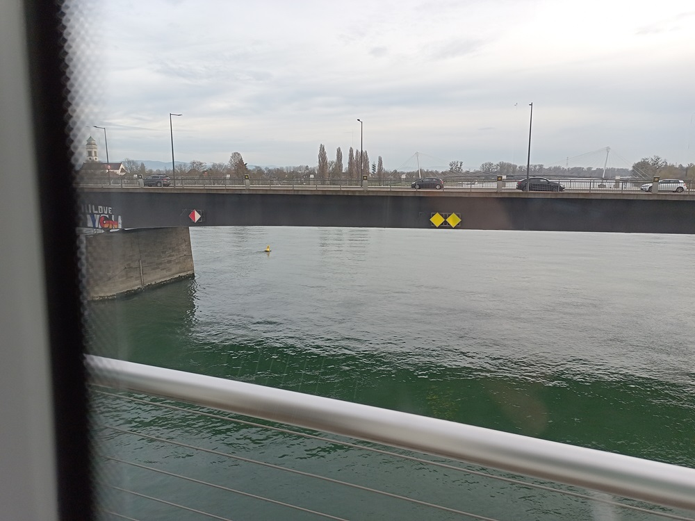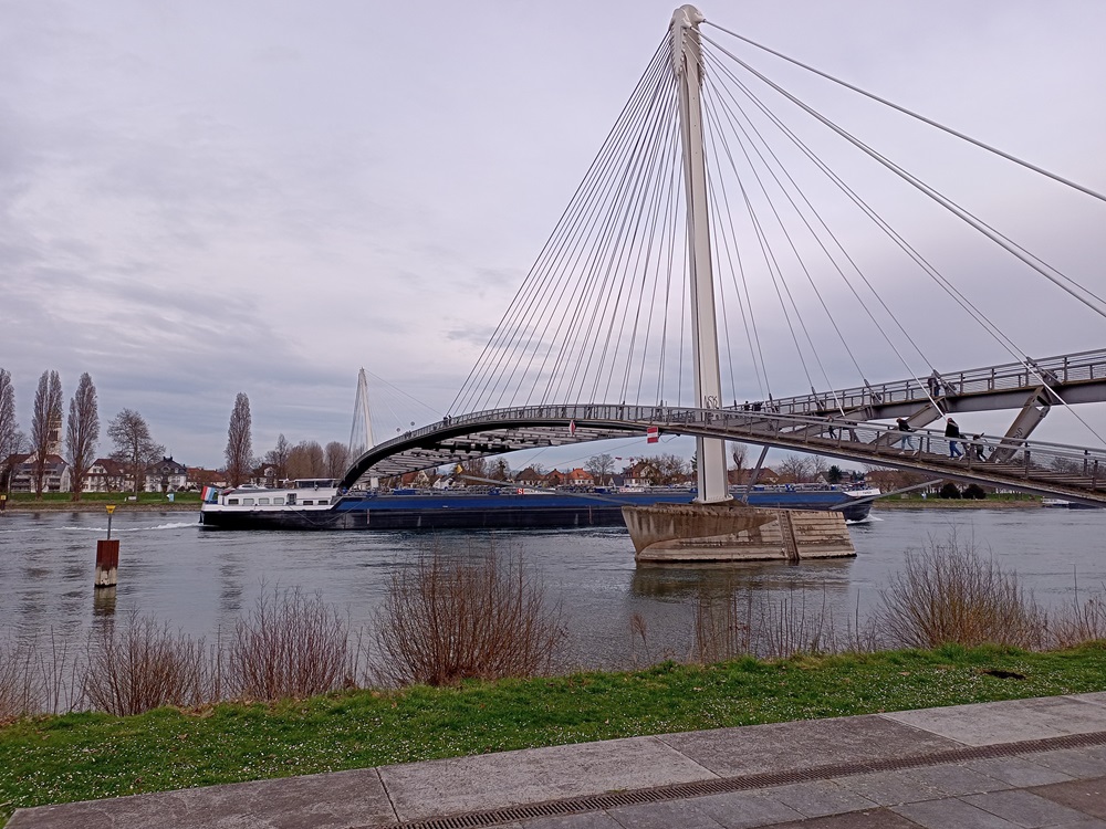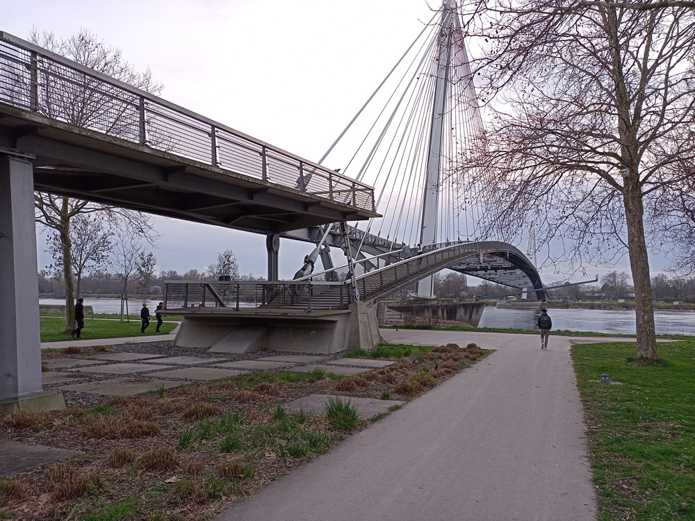 Die Wiedereinreise nach Frankreich erfolgt zu Fuß, denn Kehl und Strasbourg werden nicht nur durch die Straßenbahn und die chronisch überfüllten Züge der SWEG verbunden, sondern auch durch eine interessante Fußgängerbrücke.