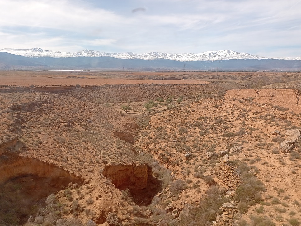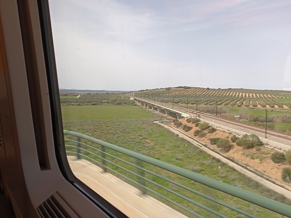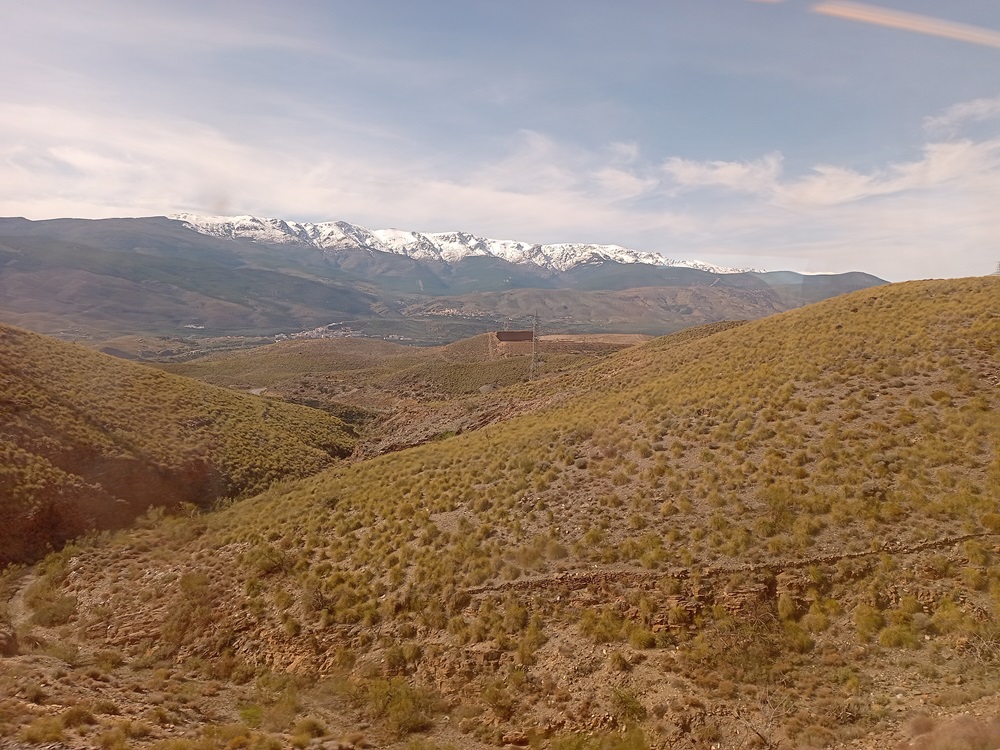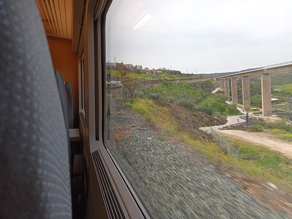 Der späten Dateneingabe und Buchungsfreigabe entsprechend ist der Zug sehr spärlich besetzt. Mehr Reisende als in dem einen SEV-Bus waren letztlich nicht im Zug. Der Media Distancia fährt in den nächsten zwei Stunden nun durch die Steppe Andalusiens und umgeht damit die Sierra Nevada.