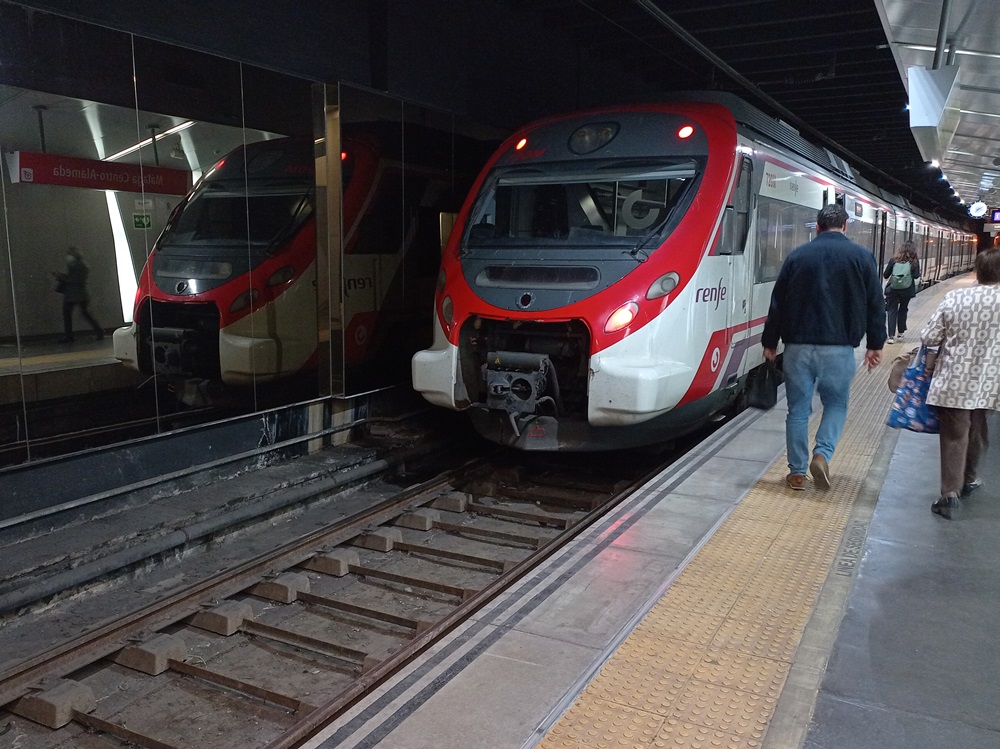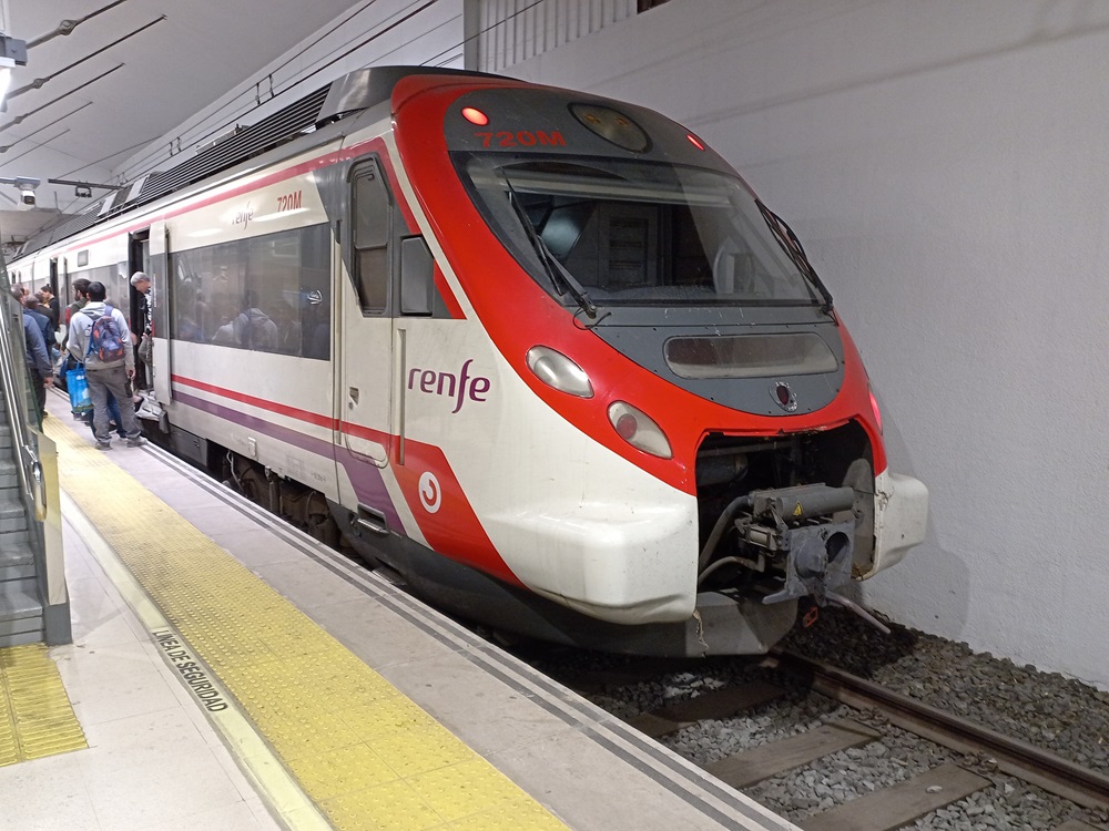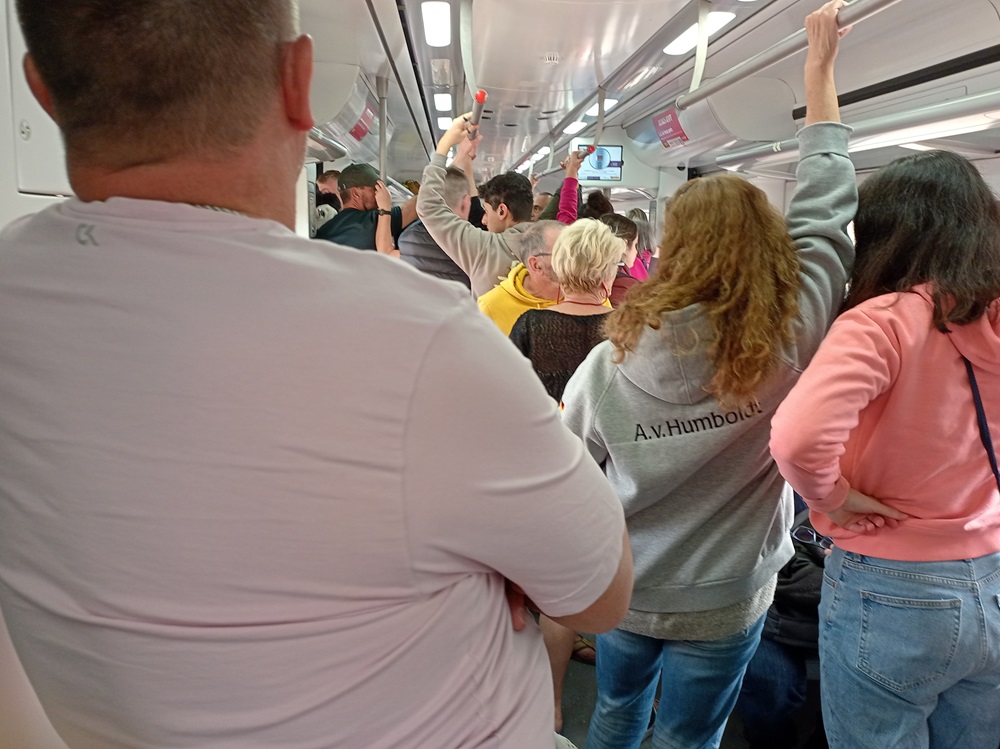 Die Linie C 1 fährt im 20-Minuten-Takt. Dennoch sind die Züge am Nachmittag extrem voll. Wir haben bereits am Eingang der Station Schwierigkeiten, auf den engen und vollen Bahnsteig zu gelangen. Nach der Einfahrt des Zuges verteilen sich die Fahrgäste aber gut darin. Allerdings hält der Zug nach nur einer Station am Hauptbahnhof María Zambrano und im weiteren Fahrtverlauf noch am Flughafen, sodass danach ein Zustieg kaum mehr möglich erscheint.