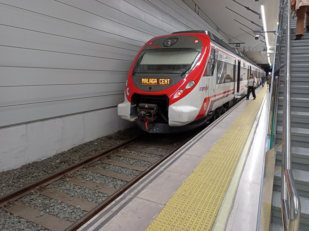 Nach dem Bezug des Hotelzimmers machen wir noch einen Ausflug an die Costa del Sol, eine der beliebtesten Tourismusregionen Spaniens. Dorthin fahren wir mit der Linie C 1 der Cercanías, die an einem unterirdischen Bahnhof direkt im Stadtzentrum beginnt.