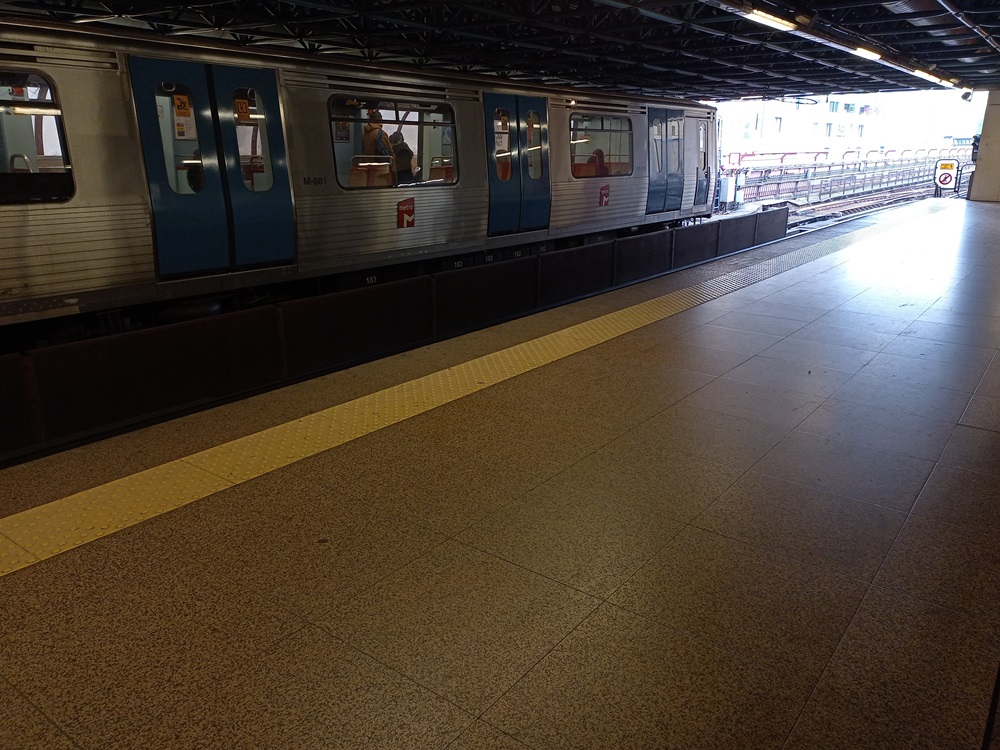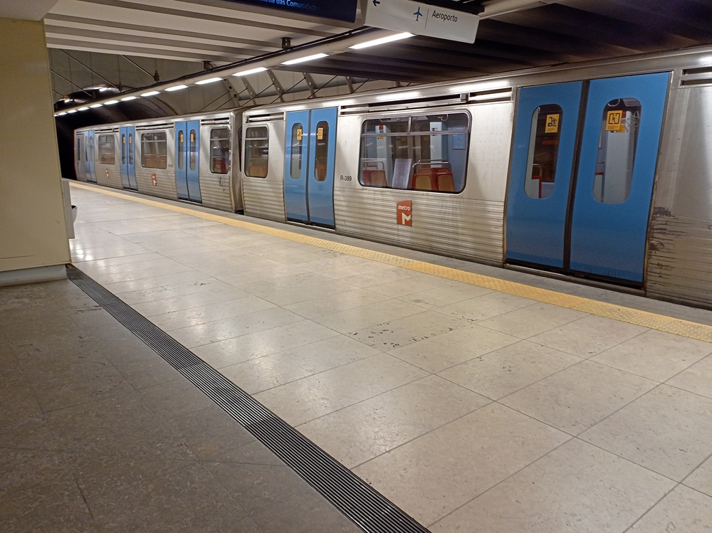 Zurück zu unserer Reise, für die wir nun mit einer Fahrkarte und ausreichend Guthaben ausgestattet sind. Wir steigen an der Bushaltestelle Campo Grande aus dem Bus und stellen fest, dass sich die Metro-Station Campo Grande noch ein ganzes Stück davon entfernt befindet. Also gehen wir zu Fuß dorthin. Auf dem Weg entlang der Straße überqueren uns regelmäßig Passagierflugzeuge, die in sehr geringer Höhe (nur rund 100 Meter über dem Boden) über der Stadt hinweg fliegen. Tatsächlich befinden wir uns, obwohl mitten in der Stadt, nur einen Kilometer vom Ende der Landebahn des internationalen Flughafens entfernt. Nach einigen Minuten erreichen wir die Metro-Station.