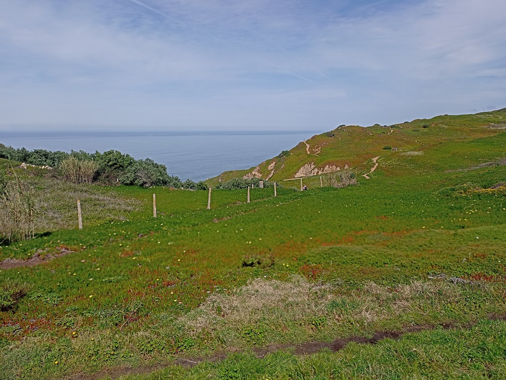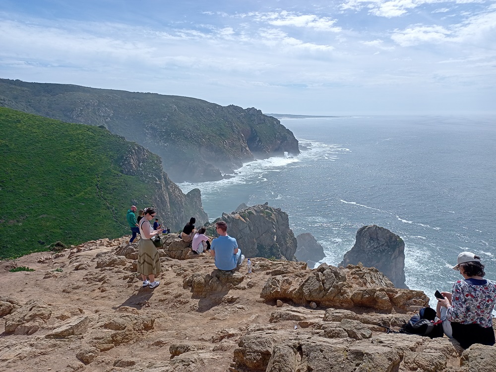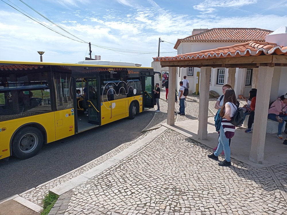 Eine Stunde später fahren wir dann mit dem Bus zum Cabo do Roca. Die Busse dorthin verkehren auch am Sonntag im Halbstundentakt und sind gut besetzt. Sie werden von der Carris Metropolitana betrieben, sodass die navegante-Karte wieder genutzt werden kann. Die Straße zum Cabo do Roca wird an diesem freundlichen Sonntag im Frühling bei von besonders vielen Motorradfahrern genutzt.