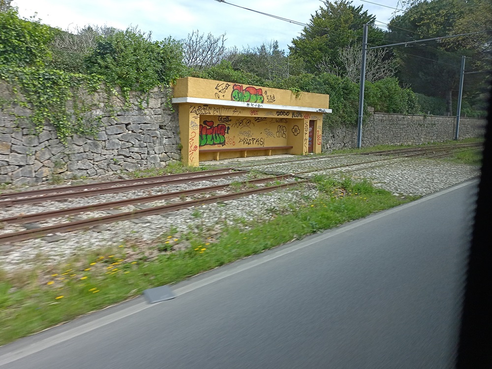 Die Straßenbahn hätten wir auf der Reise gerne auch mitgenommen; sie verkehrt allerdings nur zweimal am Tag und auf die nächste Fahrt hätten wir über 2 Stunden warten müssen. Daher fahren wir mit dem Bus durch bis nach Sintra und steigen dort um auf einen Urbano der CP zurück nach Lisboa.