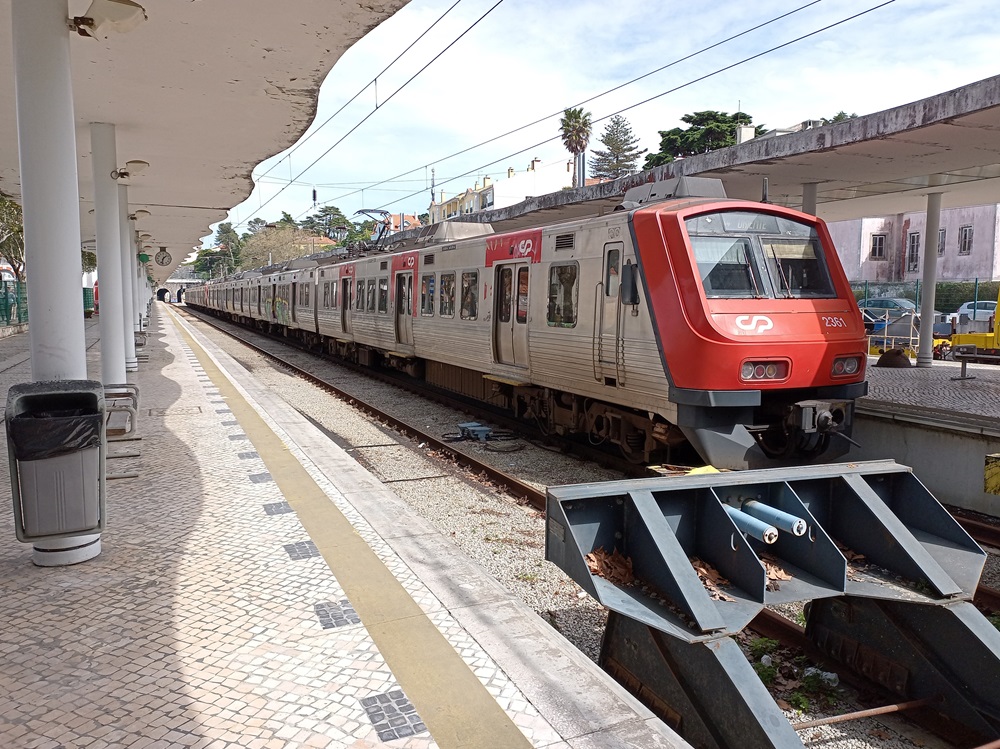 Die anderen beiden Standseilbahnen werden wir am nächsten Tag noch besuchen. Nun fahren wir aber zunächst mit dem Zug der „Urbanos“ genannten S-Bahn der CP aus Lisboa heraus.