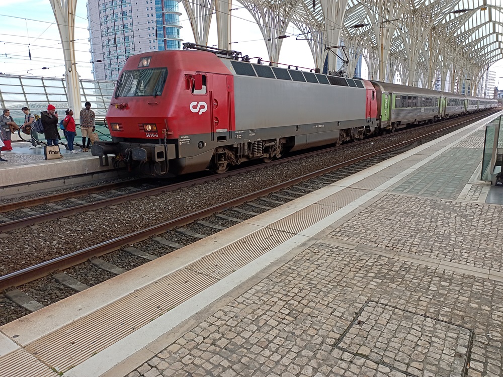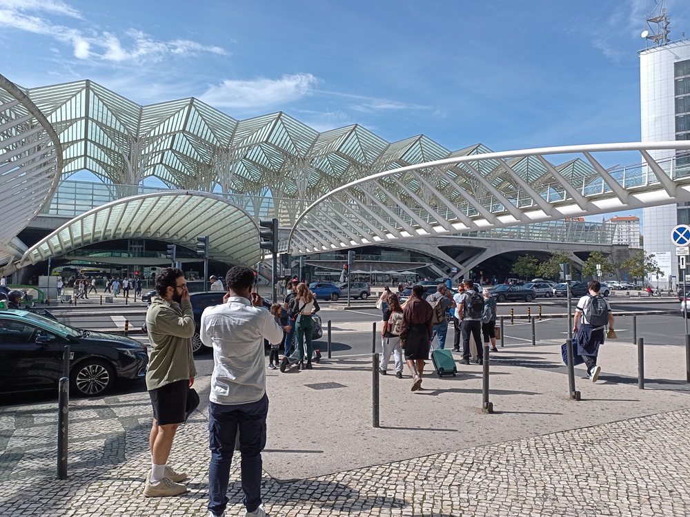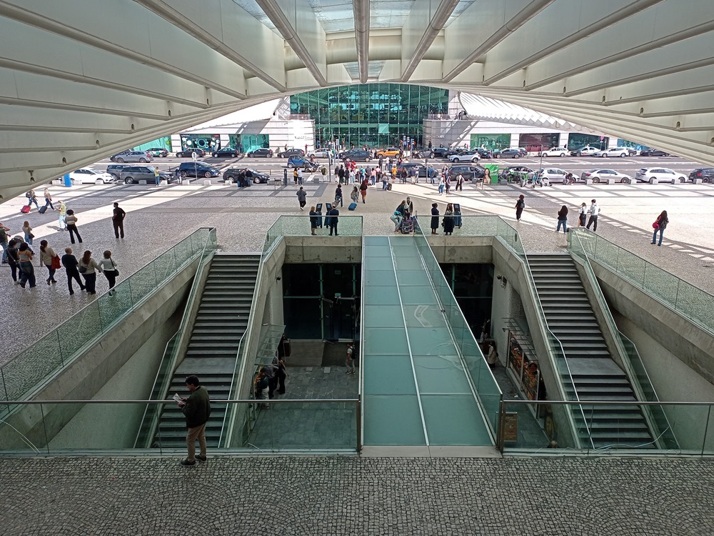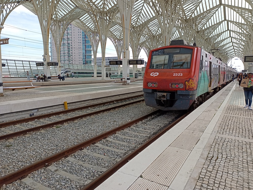 Die Baureihe 2300 erinnert von ihrem Fahrtverhalten und der Geräuschkulisse an die DB-Baureihe 425, reicht aber natürlich nicht vollständig an den einzigartigen Quietschie-Sound (nur original mit klappernden Mülleimerdeckeln!) heran. Während wir stadtauswärts am Kopfbahnhof Cais do Sodre abgefahren sind, der nur von der Linie nach Cascais bedient wird, kommen wir stadteinwärts nun am neuen Hauptbahnhof Lisboa Oriente an. Der Bahnhof wurde, wie das gesamte Stadtviertel um ihn herum, im Rahmen der EXPO 1998 in modernem Baustil neu errichtet.
