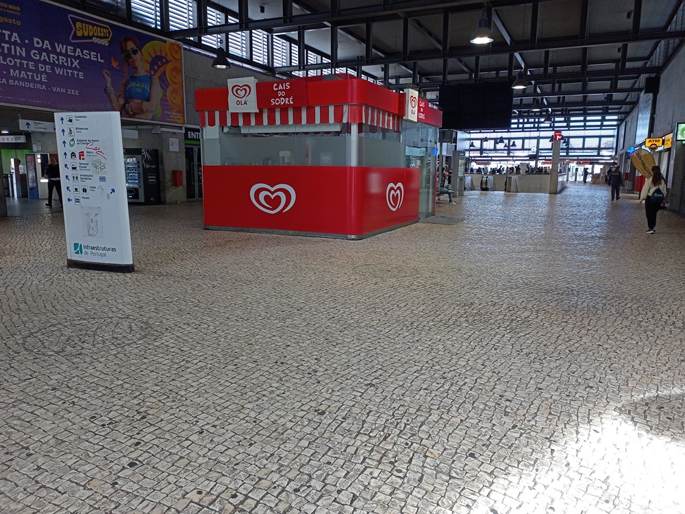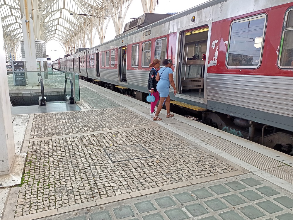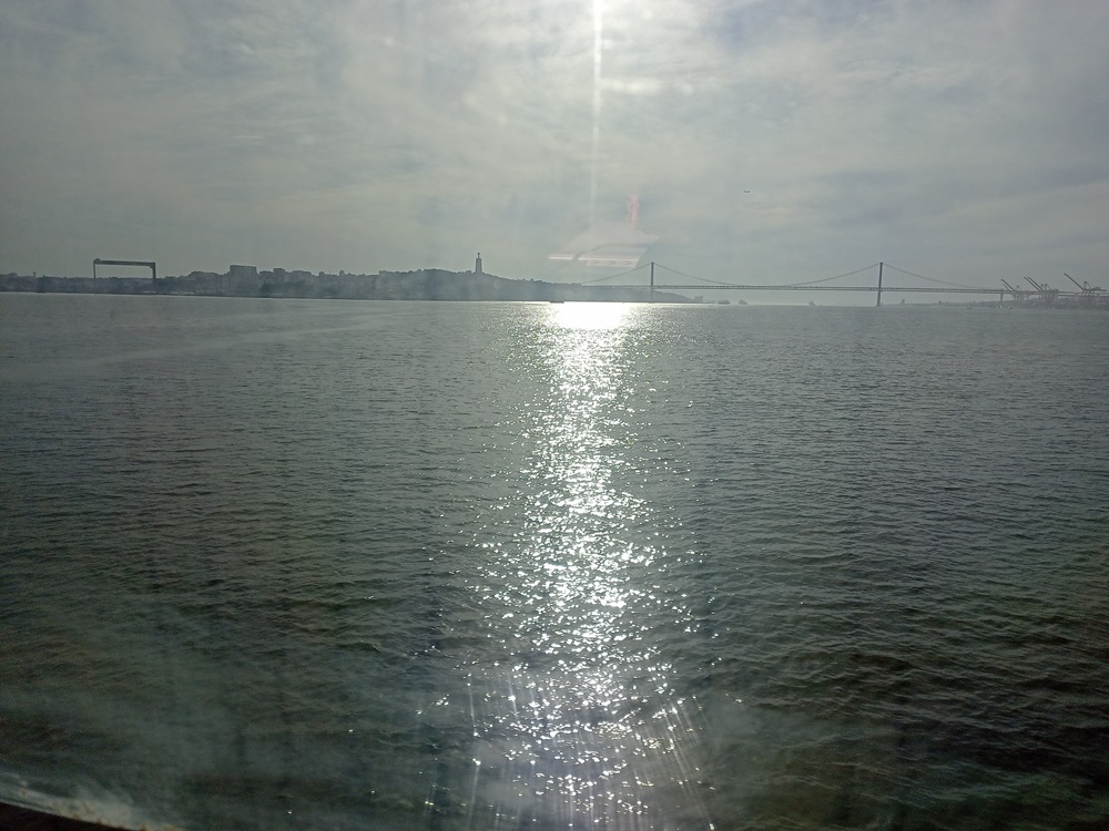 Den Tejo, der östlich von Lisboa einen 14 km breiten See bildet, möchten wir nun auch überqueren. Das ermöglicht eine Fähre der Fährgesellschaft Transtejo. Das Fährterminal befindet sich allerdings rund 8 Kilometer vom Hauptbahnhof entfernt, sodass wir zunächst mit dem Zug zu einem weiteren Kopfbahnhof in Lisboa nach Santa Apolónia fahren.
