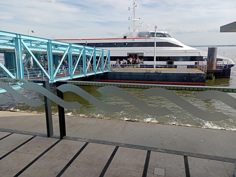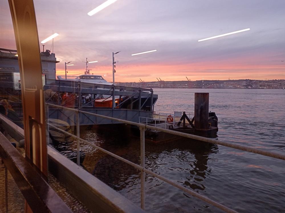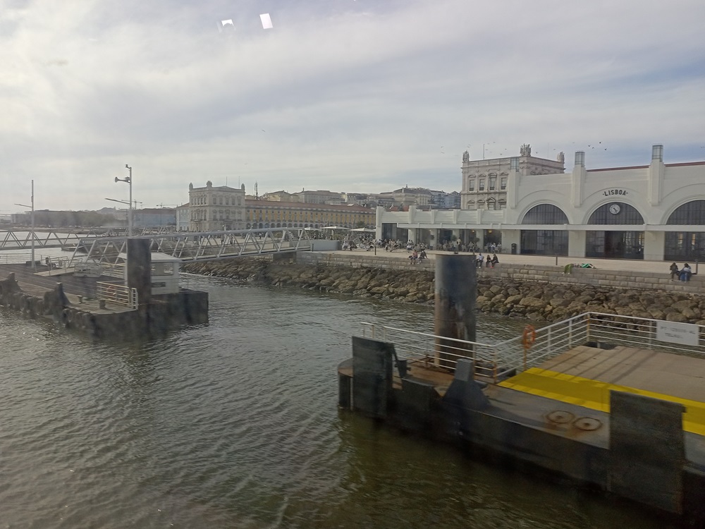 Mit der MTS fahren wir zum Fähranleger in Cacilhas. Dort ermöglicht Transtejo die Überfahrt zurück zum Bahnhof Cais do Sodré in Lisboa, an dem wir unsere Rundfahrt heute früh gestartet hatten.