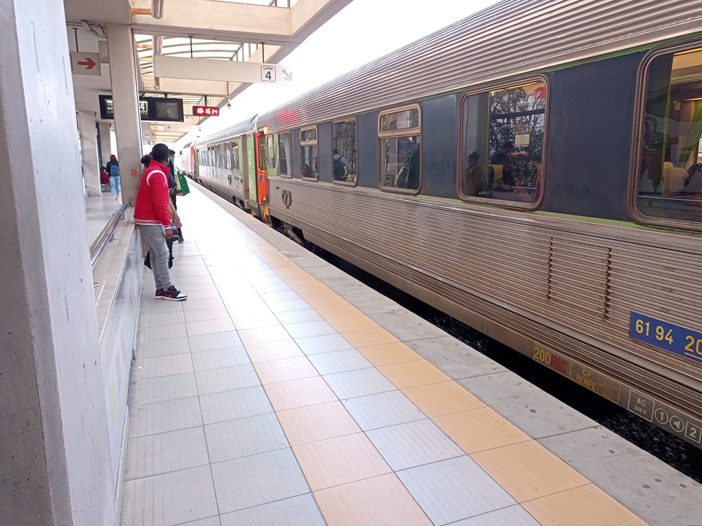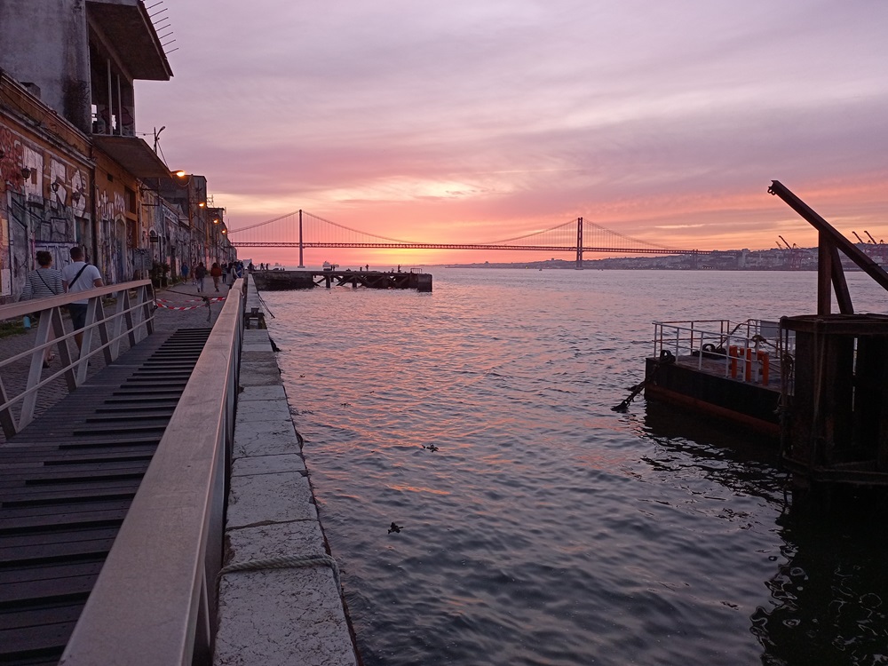 Der Zug, der mit nur 4 Wagen für einen Sonntagabend recht kurz ausfällt, aber dennoch nicht voll besetzt ist, wird in Kürze die Ponte 25 de Abril queren und damit in die Stadt Lisboa einfahren. Da sich die Fernbahnhöfe in Lisboa aber relativ weit von der Innenstadt entfernt befinden, nutzen wir einen anderen Weg zurück in die Stadt.