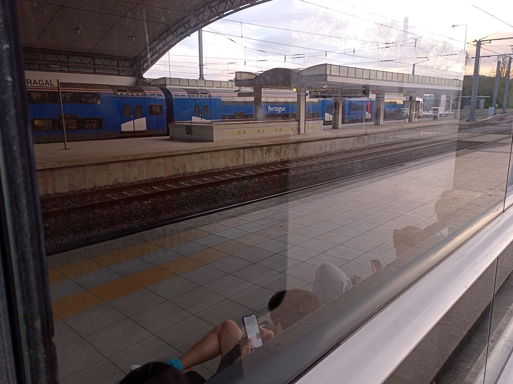 Der Zug, der um 17:25 abfahren soll, kommt planmäßig um 17:18 aus Setúbal in Barreiro an. An diesem Tag erreicht der Zug jedoch erst zur planmäßigen Abfahrtszeit den Endbahnhof. Der Fahrgastwechsel dauert ziemlich lange, da sich viele Fahrgäste aus und in den kleinen Triebwagen drängen. Der Stundentakt am Sonntag scheint der Nachfrage auf dieser Strecke nicht ganz gerecht zu werden. Mit 5 Minuten Verspätung beginnt somit die Zugfahrt zurück in Richtung Setúbal. Unterwegs baut der Zug an jedem Halt eine weitere Minute Verspätung auf, verursacht durch sehr enge Fahrzeitvorgaben einerseits und weiterhin großen Andrang andererseits. Den Knotenpunkt Pinhal Novo, den wir am Vortag bereits mit dem Alfa Pendular passiert haben, erreicht der Urabno daher um rund 10 Minuten verspätet. Eigentlich wäre der 8-Minuten-Übergang zum IC nach Lisboa Oriente damit nicht mehr möglich. Wir gehen allerdings in der Hoffnung auf eine geringe Verspätung des IC trotzdem zum Bahnsteig und werden nicht enttäuscht.