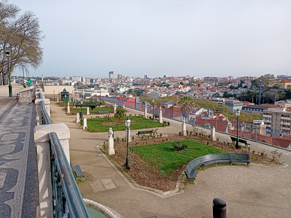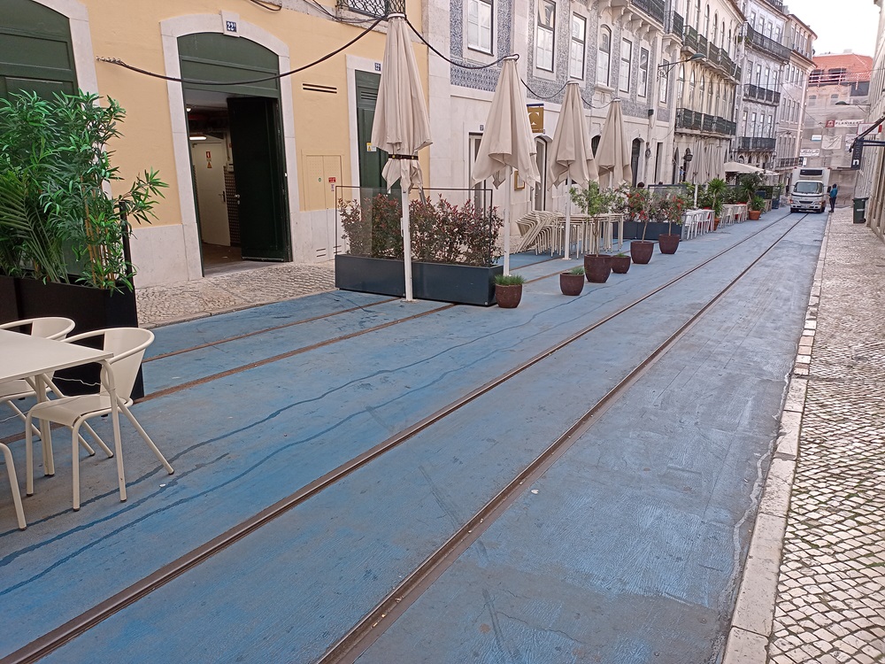 Da der Aufzug wegen Wartungsarbeiten außer Betrieb genommen wurde, gehen wir zu Fuß hinunter zum Praça do Rossio.