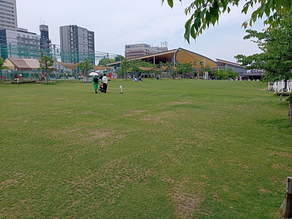Auf der Insel befindet sich sogleich der Zugang zum Haltepunkt Naniwabashi der 2008 eröffneten unterirdischen Nakanoshima Line der Keihan Railway.