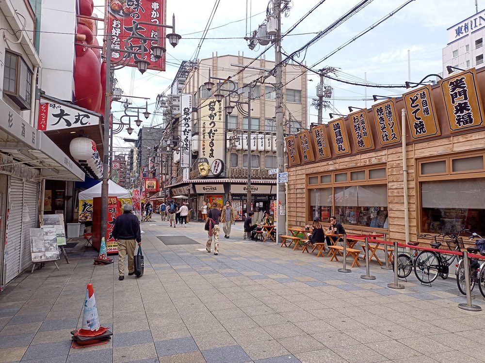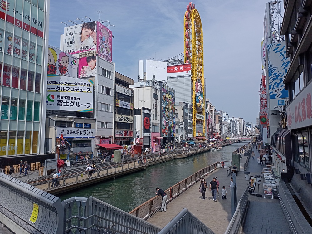 Unmittelbar nördlich von Namba liegt das Ausgehviertel Dotonbori, das von vielen Touristen bei Nacht als eine der Hauptattraktionen von Ōsaka aufgefasst wird. Am frühen Nachmittag hält sich der Trubel dort aber noch in Grenzen.