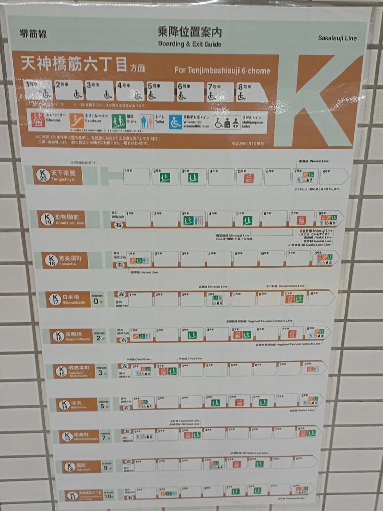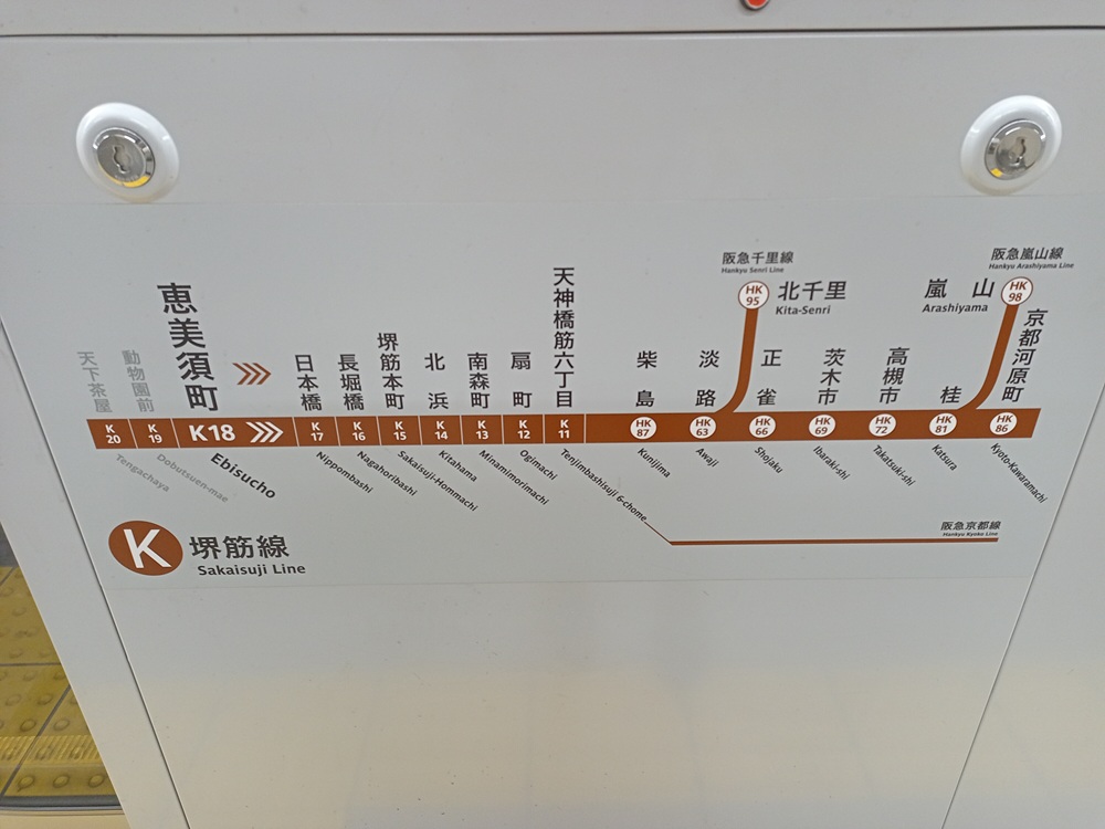 Da die Entfernungen in japanischen Großstädten nicht zu unterschätzen sind, setzen wir unsere Erkundung mit der Sakaisuji Line der Ōsaka Metro fort.