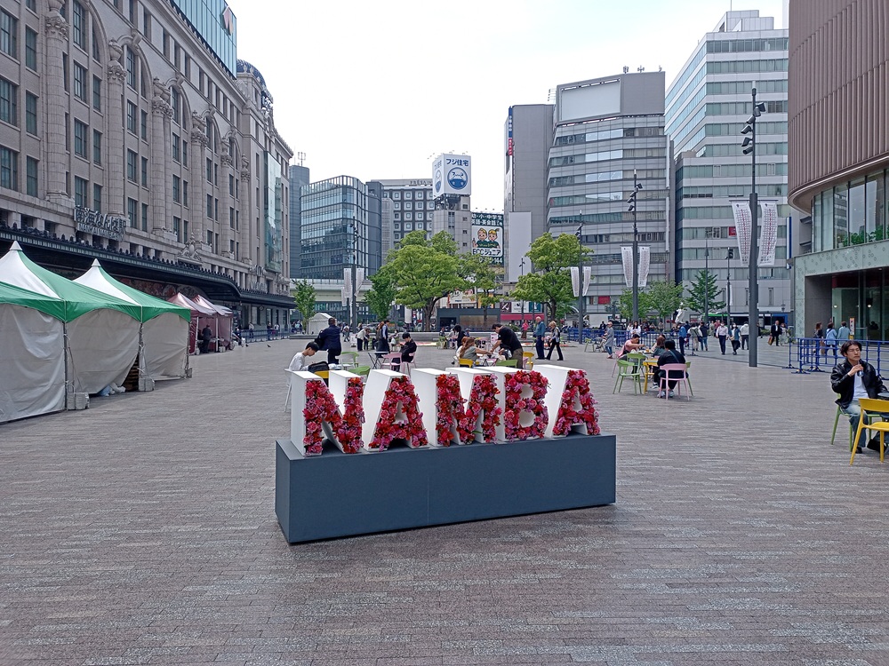 Namba ist ein zentral gelegenes geschäftiges Einkaufsviertel, das aufgrund der zentralen Bahnhöfe mehrerer Gesellschaften gerade zur Hauptverkehrszeit stark von Ein- und Auspendlern frequentiert wird.