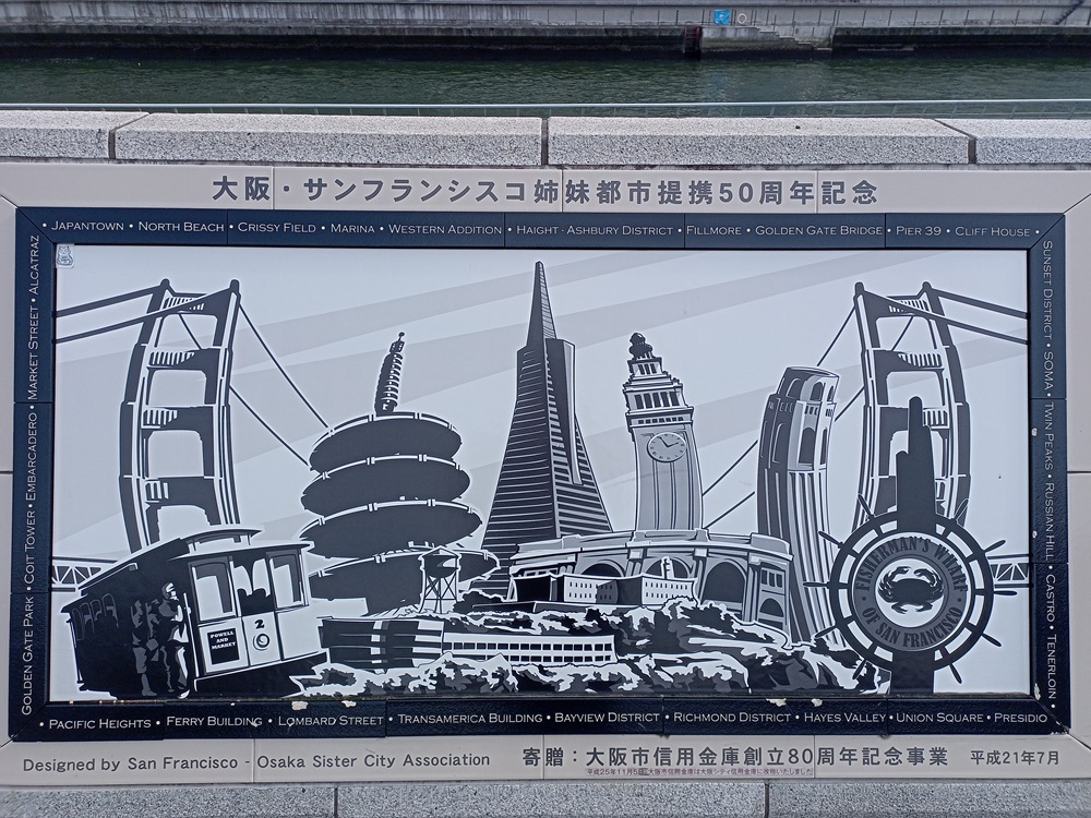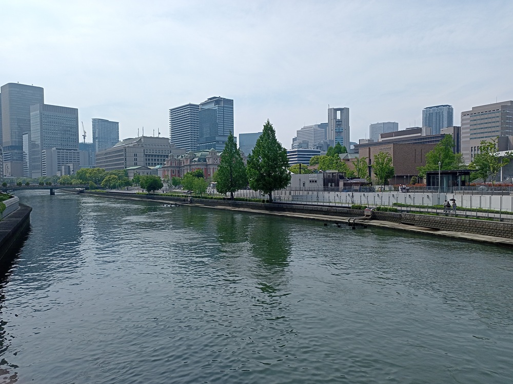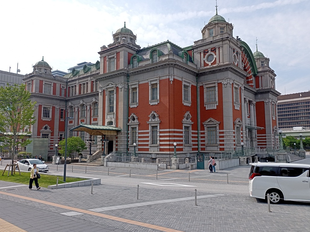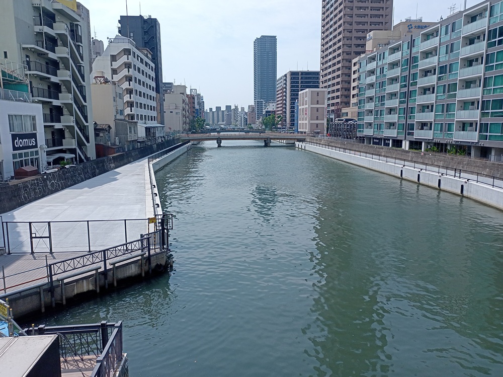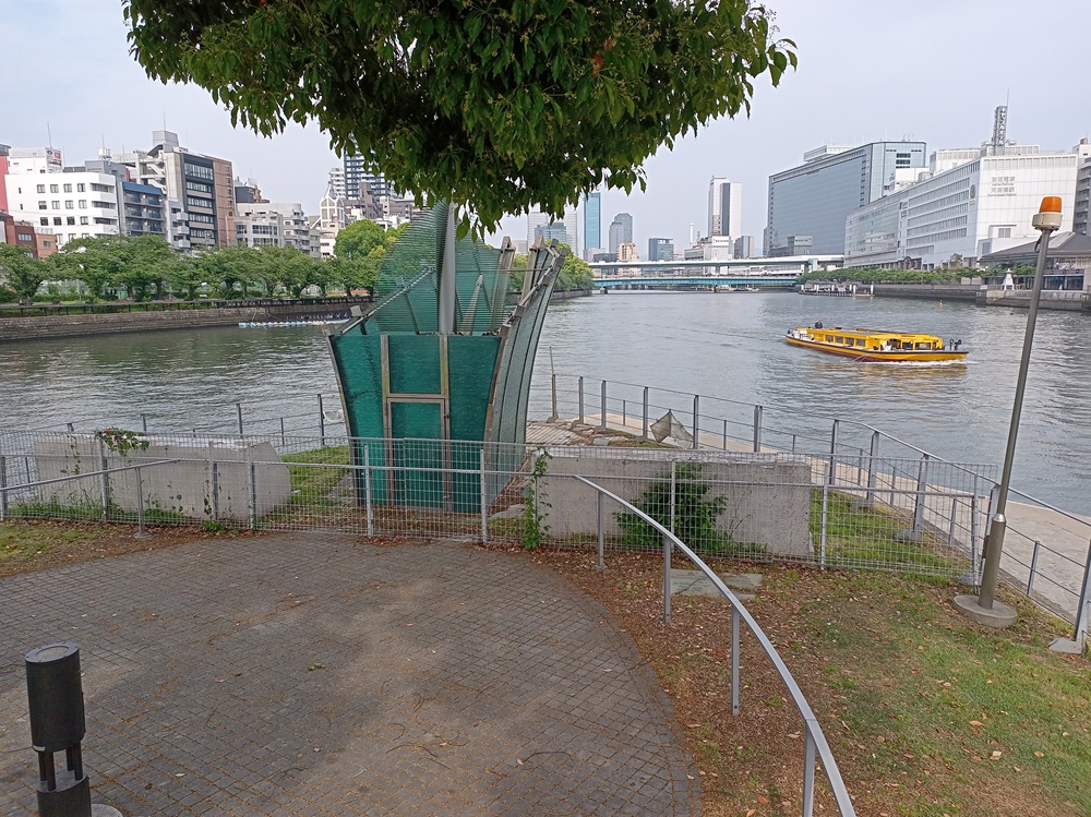 Von dort erreichen wir über eine Brücke die Insel Nakanoshima, die u. a. mehrere Museen, das Rathaus von Ōsaka sowie eine Niederlassung der japanischen Zentralbank beherbergt.