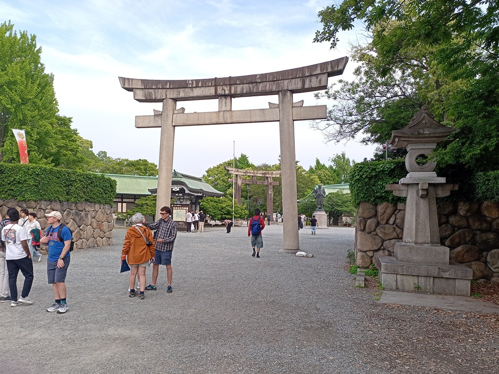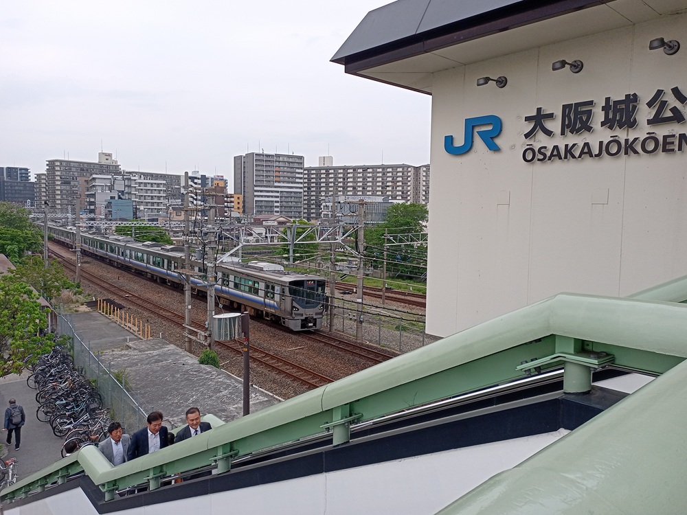 Die Ōsaka Castle hat ihren eigenen Bahnhof an der Ōsaka Loop Line. Ōsakajōkōen heißt in etwa so viel wie „Garten (Kōen) der Burg (Jō) Ōsaka“. Mit einem Nahverkehrszug der Ōsaka Loop Line kehren wir zurück zum Hauptbahnhof Ōsaka und holen dort unser Gepäck ab.