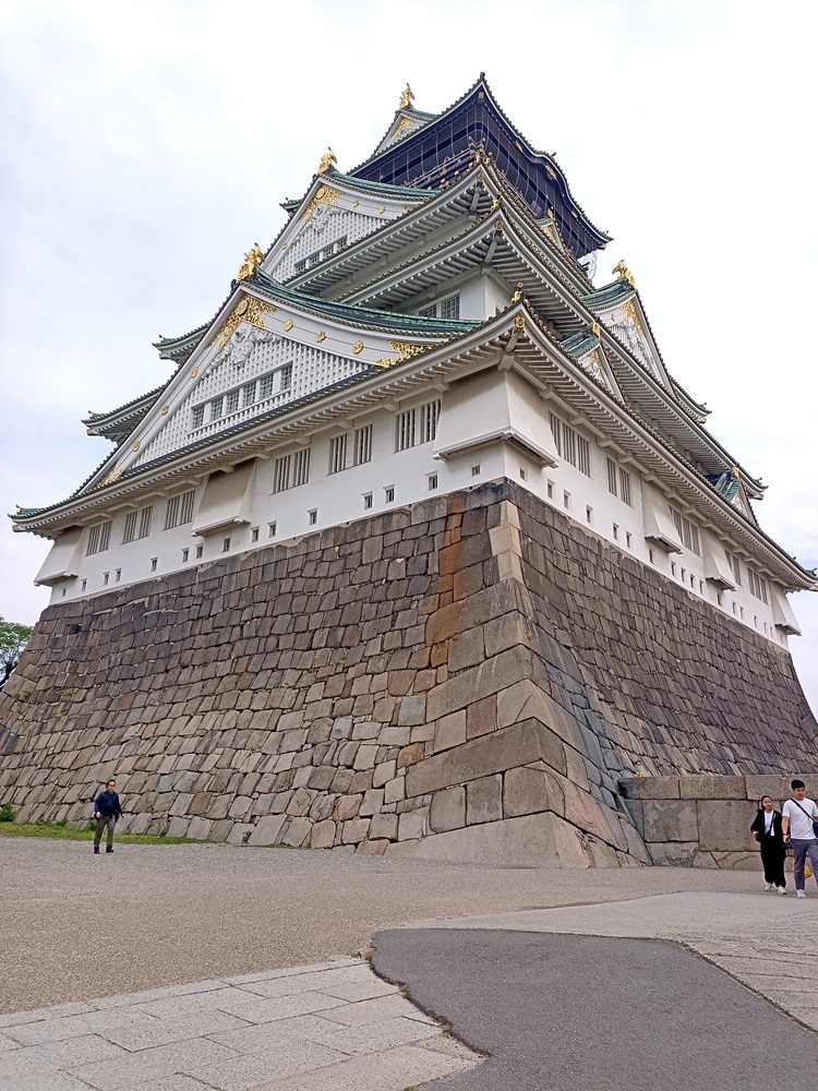 Nachdem wir nun den ganzen Tag überwiegend die moderne, urbane Seite der Stadt gesehen haben, wird es nun Zeit für unsere erste „historische“ Sehenswürdigkeit in Japan: Die Ōsaka Castle. Viele japanische Städte sind um historische Burgen herum entstanden, die teils heute noch erhalten sind oder nach Kriegsschäden wiederaufgebaut wurden. In Städten ohne erhaltene bzw. rekonstruierte Burg findet sich oft eine entsprechende Ruinenstätte. Auch die Burg in Ōsaka ist ein Nachbau aus dem Jahr 1997, nachdem das originale Gebäude aus dem 16. Jahrhundert bereits nach wenigen Jahren einem Krieg zum Opfer fiel und die Burg zuletzt 1945 durch die Alliierten im 2. Weltkrieg zerstört wurde, da die Japaner das Gelände zur Lagerung von Waffen nutzten. Heute ist der recht junge Nachbau ein Museum, welches wir aber nicht besuchen werden, da uns eine deutlich schönere Burg am letzten Reisetag erwartet.