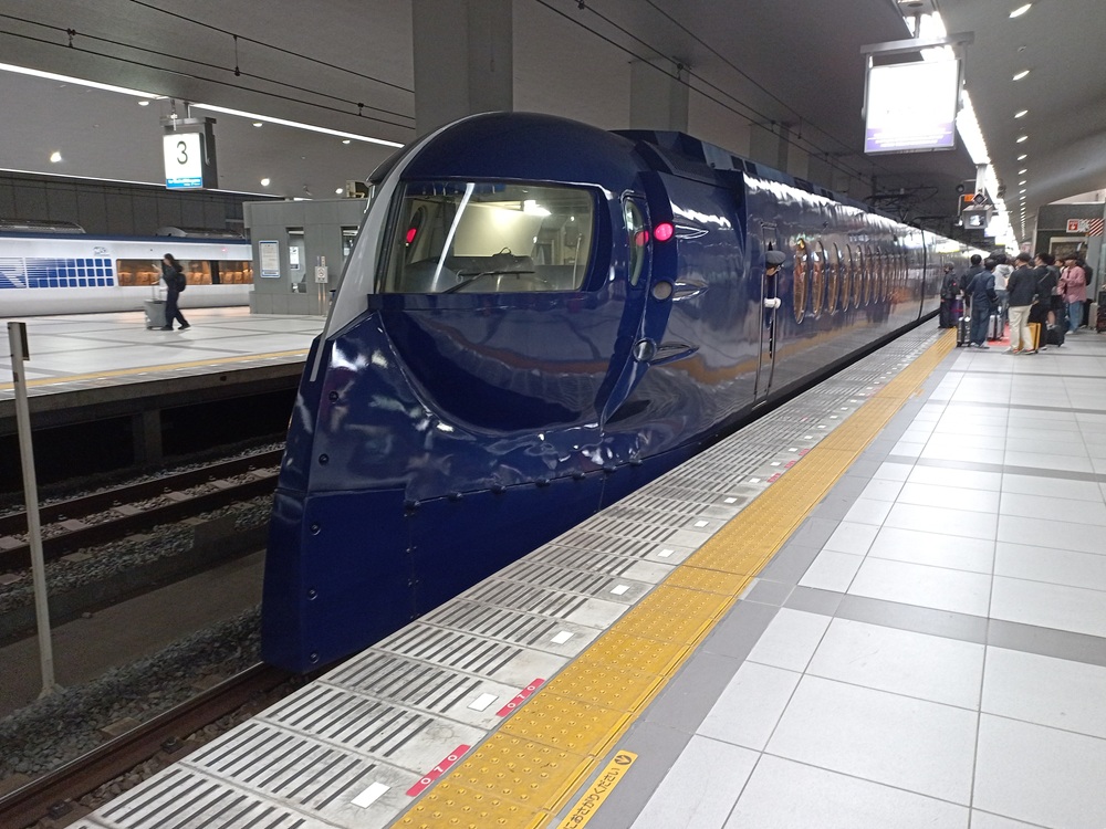 Der Tf des Limited Express wählt die Geschwindigkeit dabei so, dass der Zug vor den Überholungsbahnhöfen solange ausrollt, bis der vorausfahrende Zug die Strecke geräumt hat. Dann dreht er die Leistung wieder voll auf und wir passieren bei voller Fahrt den Überholungsbahnhof. Insgesamt verläuft die ungleichmäßige Fahrt daher trotzdem angenehm und vor allem pünktlich. Die Fahrscheinkontrolle im Zug ist indes ebenfalls entspannt: Der Zugchef betritt unseren Wagen, geht bis zur vordersten Reihe durch, dreht sich um, verbeugt sich vor den Fahrgästen und gleicht auf dem Rückweg die Platzbelegung mit den Reservierungsdaten auf seinem Mobilgerät ab. Den Komfort-Check-In gibt es in reservierungspflichtigen Wagen in Japan demnach ebenfalls kostenlos und ohne weiteres Zutun der Fahrgäste. Nur wenn jemand falsch sitzt oder ohne Reservierung eingestiegen ist, wird diese Person zur Kontrolle angesprochen und kann sich dann ggf. umsetzen oder den fehlenden Zuschlag ohne Aufpreis nachlösen. Nach 30 Minuten erreichen wir pünktlich den Endbahnhof Namba im Stadtzentrum von Ōsaka.