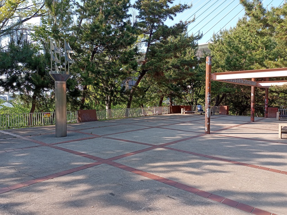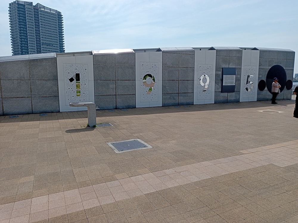 Die Station Ōsakakō liegt auf eine der vielen künstlich aufgeschütteten Inseln im Hafen von Ōsaka (die große Hafeninsel „Port Town“, die wir am Vortag besucht haben, liegt unmittelbar westlich). Diese hier weist aber eine Besonderheit auf, denn sie verfügt über eine „markante“ Erhebung.