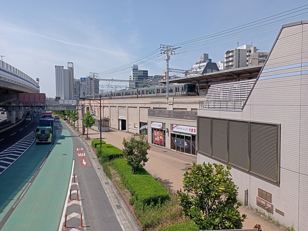 Zurück zum Bahnhof Ōsaka fahren wir schließlich mit dem Zug. Der nächste JR-Bahnhof Sakurajima ist nur rund 400 Meter Luftlinie entfernt – leider aber auf der anderen Seite des Aji Rivers. Zum Glück bietet die Stadt Ōsaka dafür eine passende Lösung an.