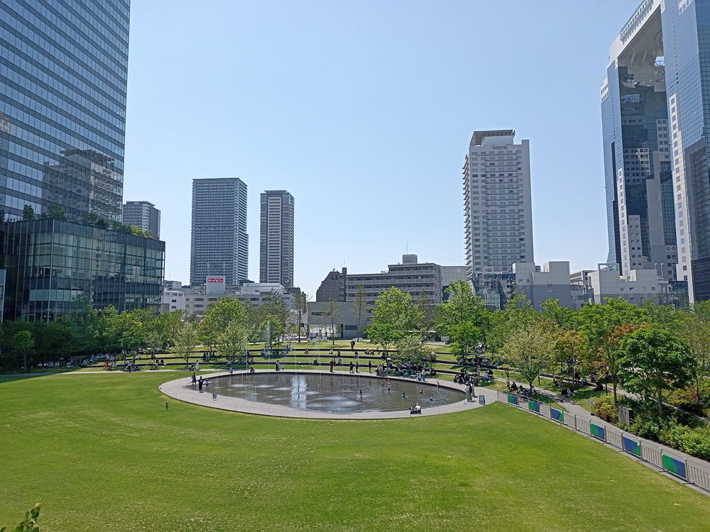 Unser nächstes Ziel ist der markante Wolkenkratzer links: Das Umeda Sky Building.