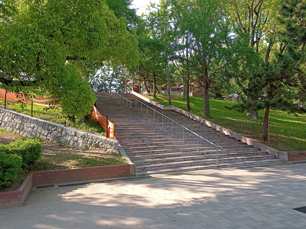 Der eigentliche „Gipfel“ des Berges liegt heute in einer Parkanlage und ist daher nicht mehr als solcher zu erkennen. Dafür lässt sich die alpine Höhe von immerhin 5 Metern leicht wieder absteigen 😉