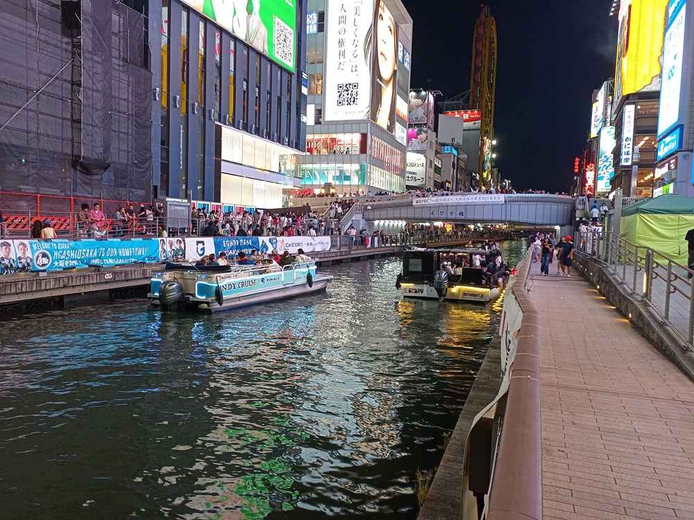 Der Tag war vergleichsweise kurz und wenig anstrengend (zumindest gemessen am EXPO-Besuch am Vortag). Daher fahren wir am Abend, der dank der frühen Dämmerung bereits gegen 19:00 beginnt, noch kurz mit der Metro in die Stadt in das „Szeneviertel“ Dotonbori.
