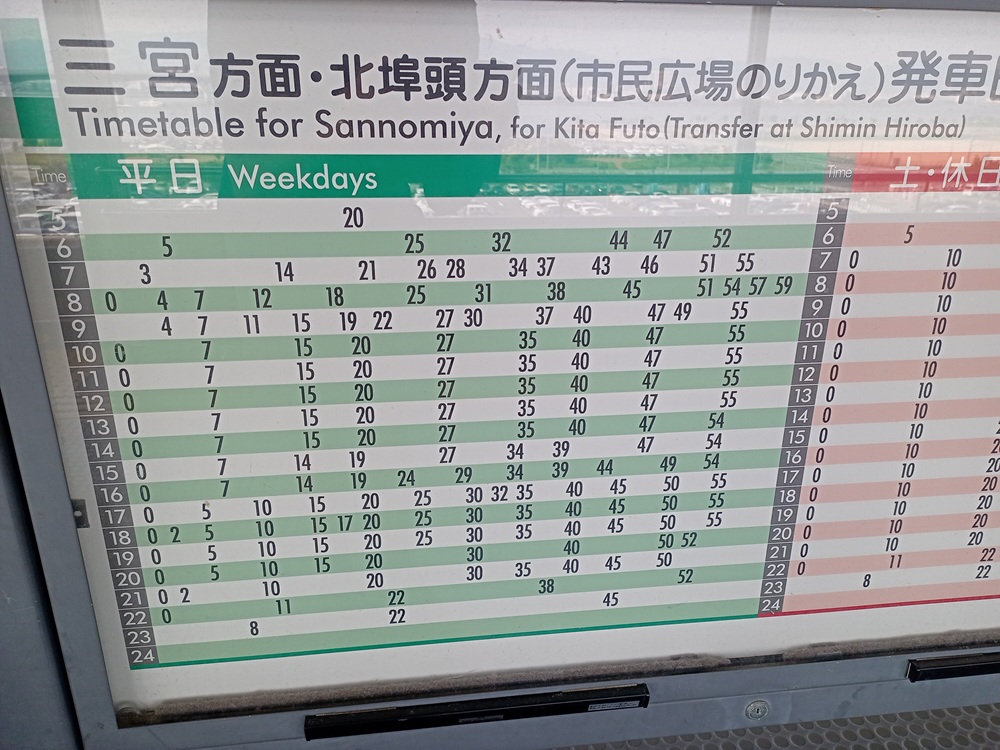 San’nomiya ist im Kapsspur-Netz der wichtigste Bahnhof der Stadt Kōbe – auch wichtiger als der „Hauptbahnhof“ Kōbe selbst, da dort einige Limited Express (so z. B. der Super Hakuto) ohne Halt durchfahren. Von San’nomiya aus ist der Shinkansen-Bahnhof Shin-Kōbe zudem nur eine Station mit der Metro entfernt. Wir sind aber heute hier her gekommen, um ein anderes Anschluss-Verkehrsmittel zu nutzen: Den Port Liner!