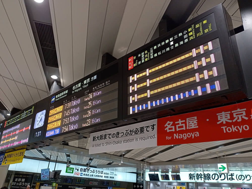 Die rund 20-minütige Verspätung ist für japanische Verhältnisse sehr ungewöhnlich, obwohl wir in diesem Falle durch eine kürzere Wartezeit in Nagoya davon „profitiert“ haben. Daher wird diese Zug-Verspätung auch nicht mit in die Abschlussstatistik einbezogen, denn die Reisenden-Pünktlichkeit der Fahrt liegt in unserem Fall bei -10. Außerdem weiß ich nicht, ob der eigentlich eingeplante spätere Zug pünktlich war. Mit den 20 Minuten hatte unser Zug aber offenbar noch Glück, denn in der Gegenrichtung ist das heute noch steigerungsfähig…