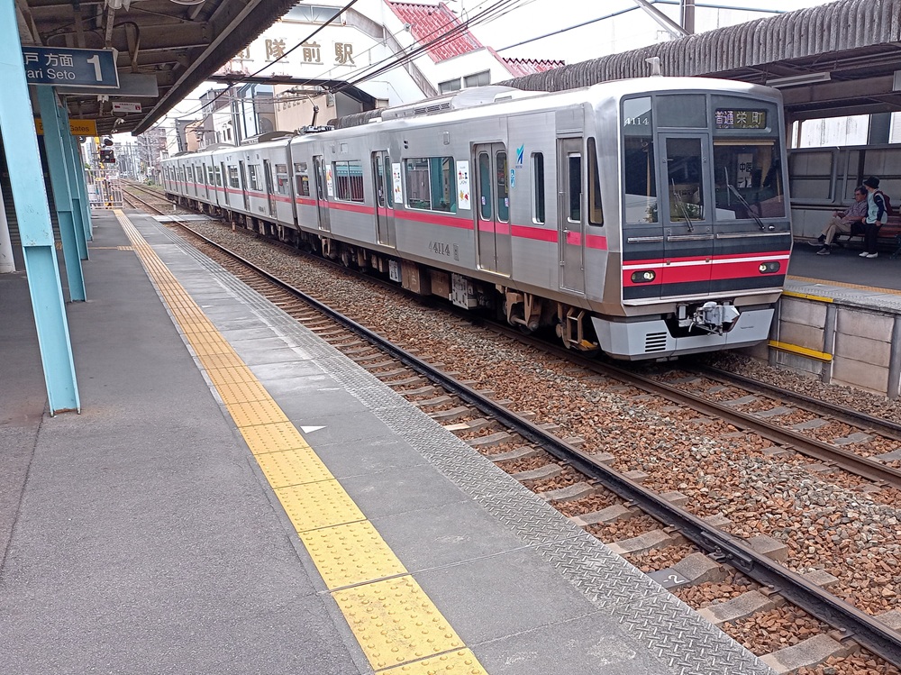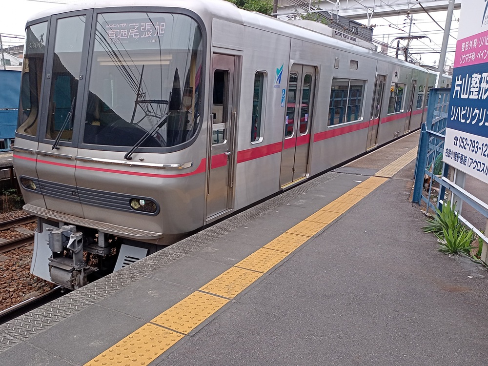 Mit der Meitetsu Seto Line möchten wir nun weiter aus der Stadt heraus in den Vorort Seto fahren. Dafür ist innerhalb der Linie ein Umstieg erforderlich. Der Haltepunkt Moriyamajieitaimae wird nur von den Local-Zügen der Seto Line bedient und der nächste Local endet bereits in Owariasahi, drei Halte vor unserer Station Shinseto. Deshalb verlassen wir den Local bereits am nächsten Express-Halt Obata und warten dort auf den nachfolgenden Express, der bis Shinseto durchfährt.