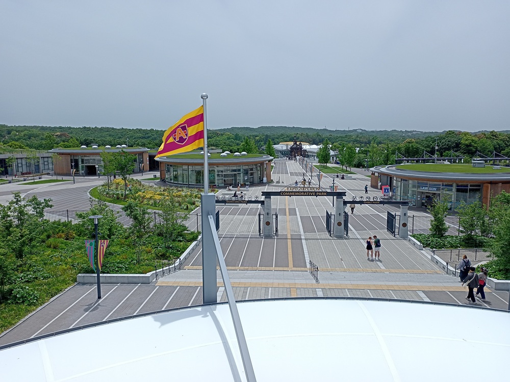 Der Bahnhofsname bedarf wieder einer Erklärung 😉 „Aichikyūhaku“ ist der Name der EXPO 2005, ein Wortspiel aus den Wörtern „Ai“ für „Liebe“ und „Chikyū“ für die Welt, wobei die Silben „Ai“ und „Chi“ zusammen wiederum den Namen der Präfektur ergeben. Damit das Wortspiel im Japanischen trotzdem als solches wirkt, ist in der Kanji-Folge für den Stationsnamen ein Trennzeichen zwischen den Silben „Ai“ und „Chi“ enthalten. Es sei an dieser Stelle aber erwähnt, dass es in der Rōmaji-Umschrift keine feste Regel für die Silbentrennung und daraus folgende Groß- und Kleinschreibung gibt. „Ai-Chikyūhaku“ wäre also genau so richtig 🙂 „haku“ steht schließlich für „Ausstellung“. Hinter dem Namen der damaligen Weltausstellung stehen nun noch zwei weitere Wörter im Stationsnamen: „kōen“ steht, wie bereits an Tag 1 kurz angerissen, für „Park“ bzw. „Garten“. „kinen“ lässt sich als „Denkmal“ übersetzen. Zusammengefasst steigen Fahrgäste hier also am Gedenkpark für die Weltausstellung 2005 der Präfektur Aichi aus. Die allgemeine EXPO 2005, die gerade einmal 20 Jahre zurück liegt, war die letzte Weltausstellung vor der EXPO 2025, die in Japan veranstaltet wurde.