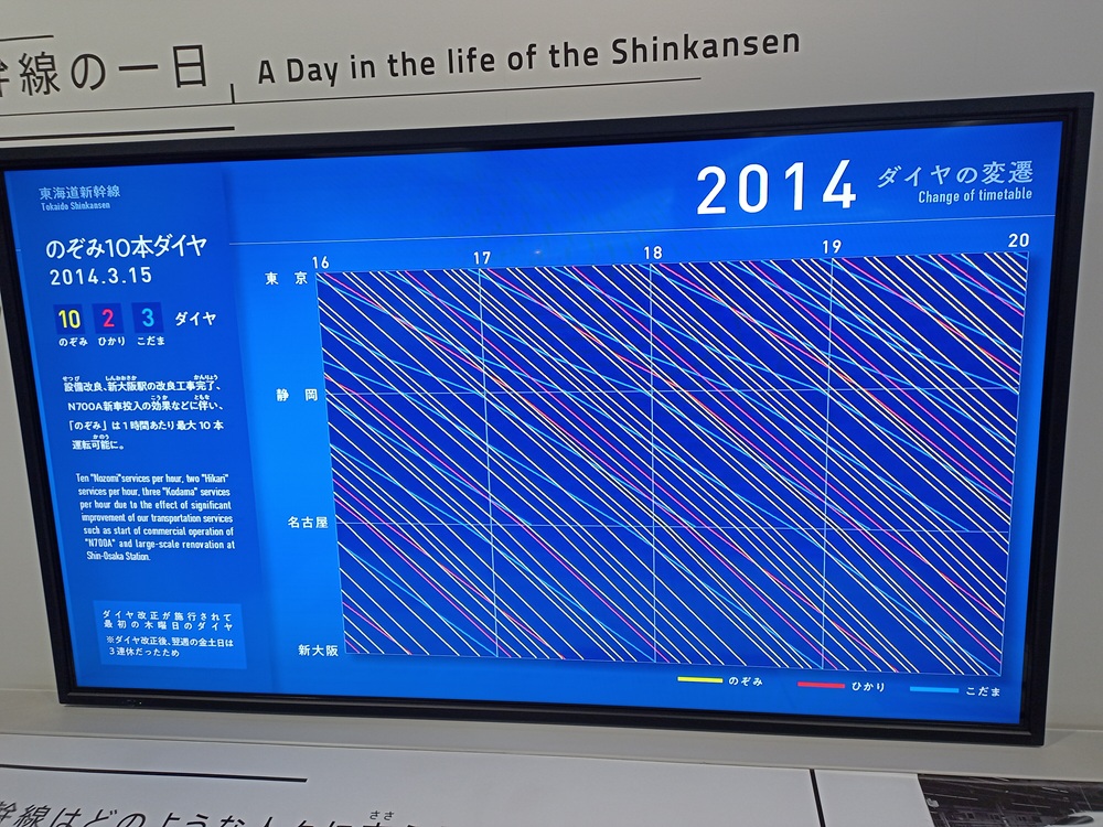 Japan plant bzw. baut aktuell die erste Hochgeschwindigkeitsfernstrecke für eine Magnetschwebebahn weltweit – also das, wofür das System einst erdacht war, bevor jemand auf die Idee kam, man könnte damit in 10 Minuten im Hauptbahnhof in den Flieger einsteigen 🙂 Wie dem auch sei: Das Museum zeigt einerseits die Pläne für diese neue Strecke und die Forschung und Technik dahinter, andererseits aber auch Geschichte und Fahrzeuge des „normalen“ Shinkansen sowie der konventionellen Eisenbahn.