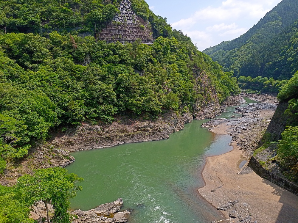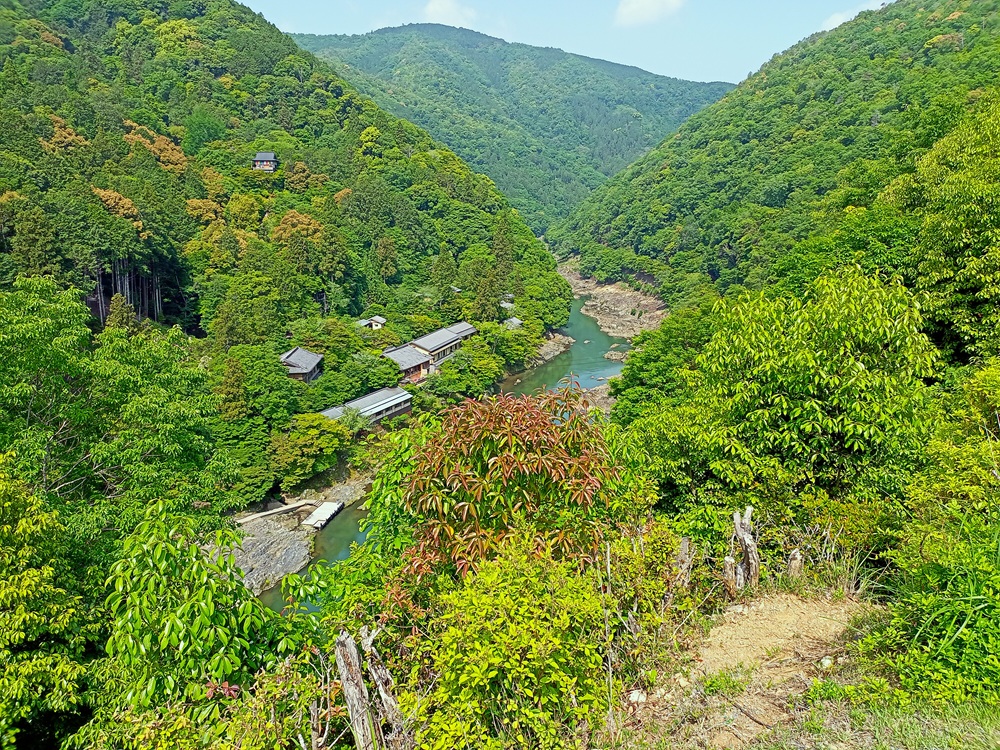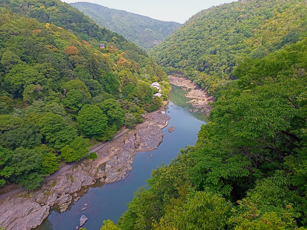Bild 9-8: Durch die Schlucht schlängelt sich der Hozu River, der hier langsam in die Ebene der Großstadt Kyōto einfließt.