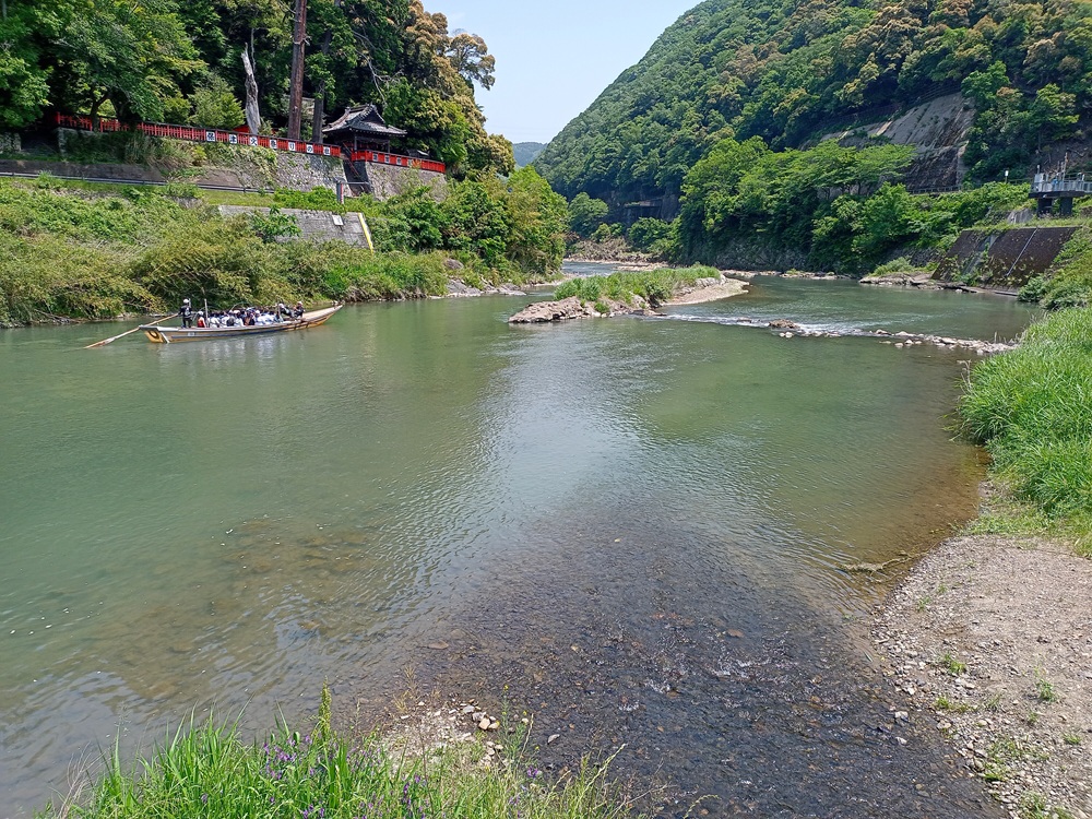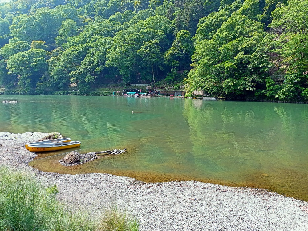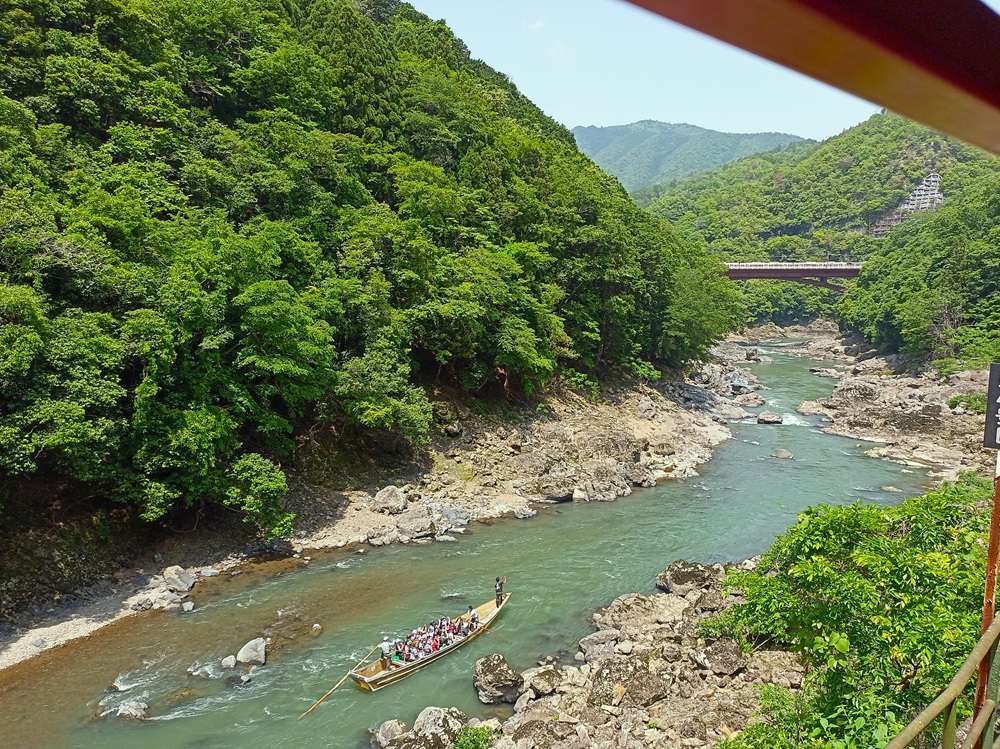 Bild 9-17: In Kameoka befindet sich der Eingang in die Hozukyō-Schlucht. Wem die Fahrt mit dem Zug nicht spektakulär genug ist, der kann hier auch ein Boot für eine Wildwasser-Tour besteigen 😉