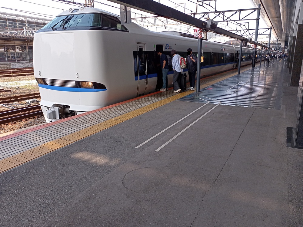 Zur Anreise nach Kyōto nutzen wir heute unser Wissen aus der Rückfahrt an Tag 4 und entscheiden uns nicht für den Limited Express Haruka, der in Ōsaka an den unterirdischen Gleisen hält, sondern für den Limited Express Thunderbird. Die Züge des Thunderbird starten in Ōsaka direkt in der Haupthalle an Gleis 11. Vom Haupteingang aus ist es dorthin rund 5 Minuten kürzer als zum Abfahrtsgleis des Haruka.