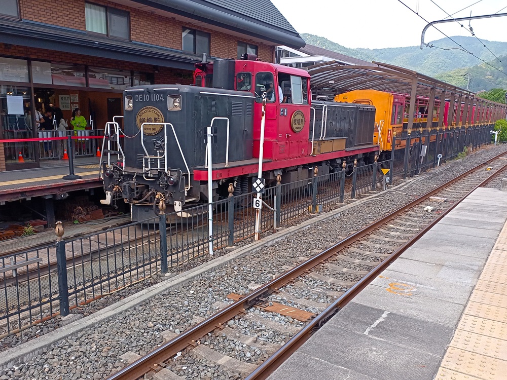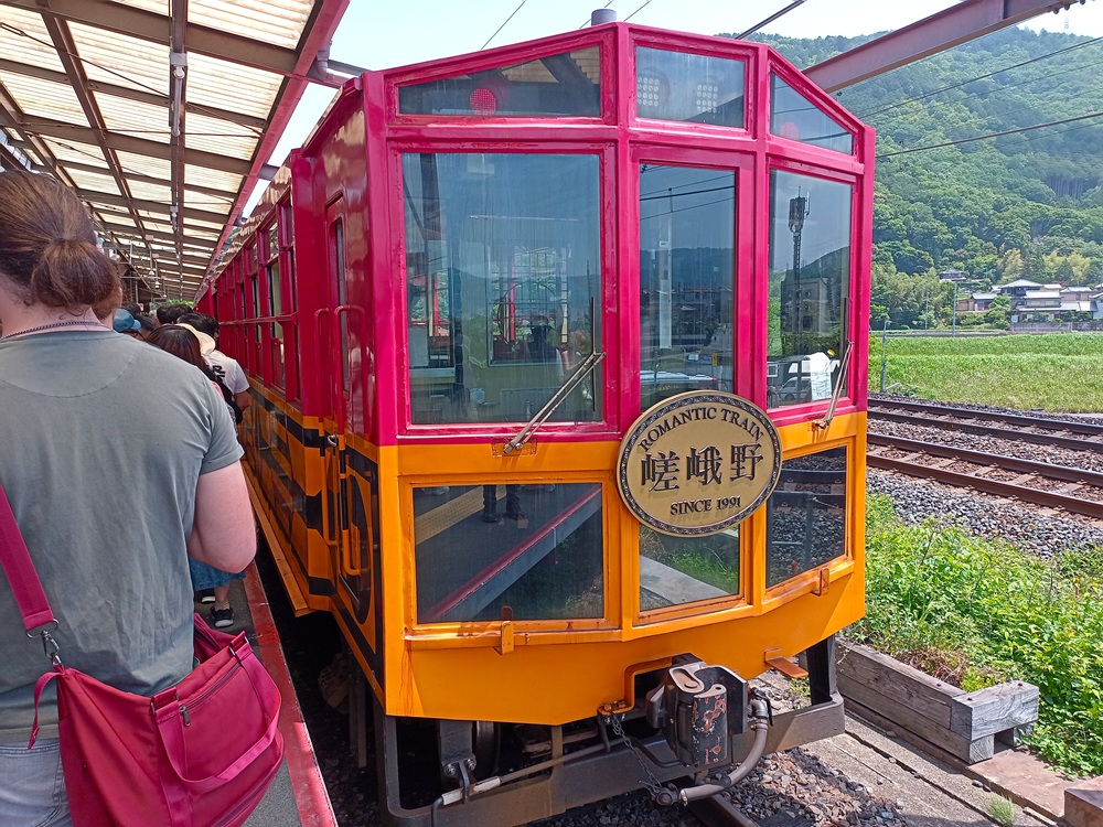 Bild 9-20: Schließlich kommt der Zug, der Sagano „Romantic Train“, nach Arashiyama.