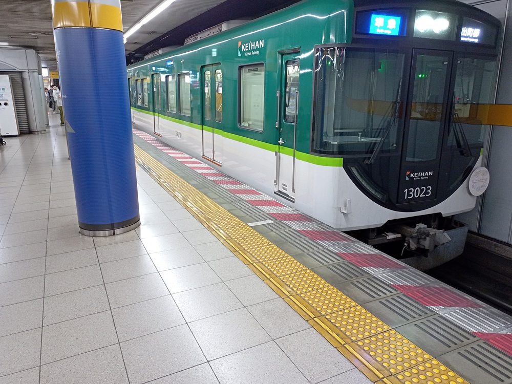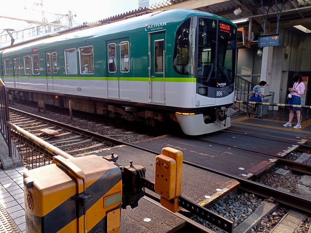 Die Keihan Main Line haben wir hier bereits an Tag 4 genutzt. Sie verläuft im Osten der Stadt als unterirdische Nord-Süd-Achse und somit faktisch ebenfalls als U-Bahn. Auch heute folgen sich ein Sub-Express (ab 13:09) und ein Limited Express (ab 13:12) in kurzem Abstand.