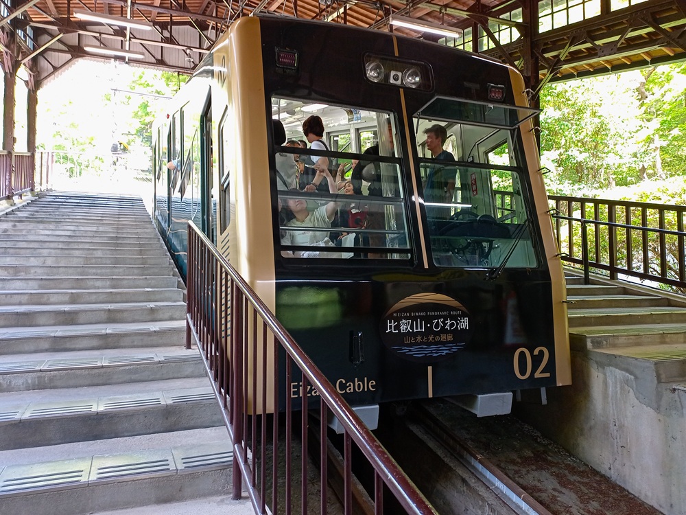 Die Strecke des Sakamoto Cable Car ist 2 Kilometer lang und überwindet 484 Höhenmeter. Die Standseilbahn fährt alle 30 Minuten. Fahrkarten sind für 870 Yen (5,45 €) an einem Automaten an der Bergstation auf immerhin noch 638 m ü. N. N. erhältlich.